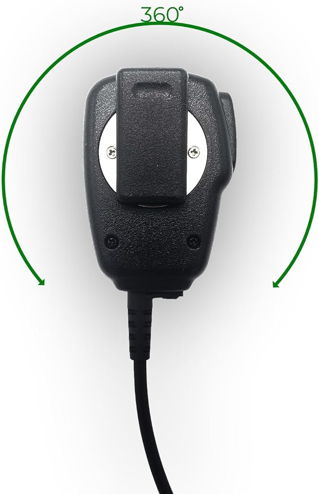 ميكروفون قوي ومتين، كابل معزز بمشبك زنبركي متين ذو 8 مواضع، أجهزة راديو "Kenwood 2-Pin ملحقة" (AnyTone، وغيرها)