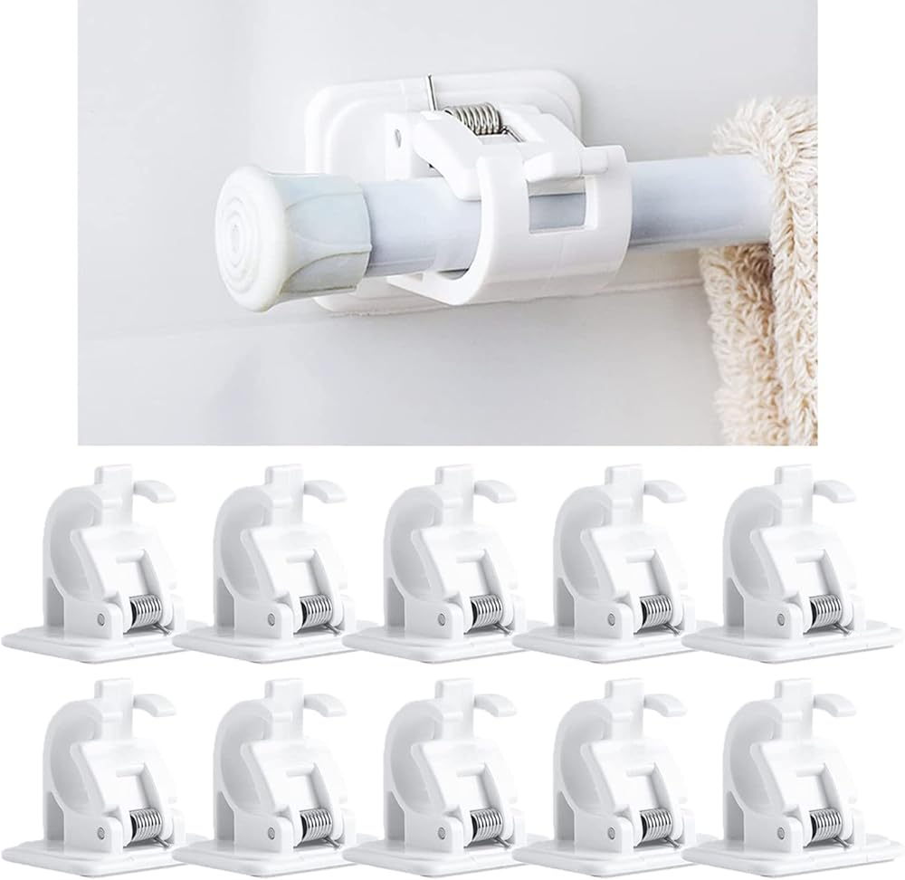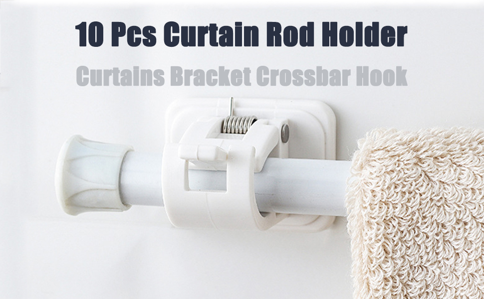 حامل دعامة قضيب ستارة ذاتي اللصق، 10 قطع بدون مثقاب حامل قضيب ستارة جداري ودعامات قضيب المناشف للحمام المنزلي واستخدام الفندق، أبيض