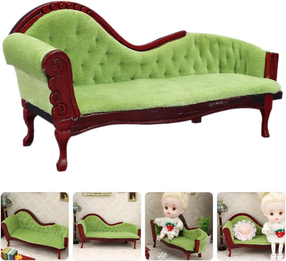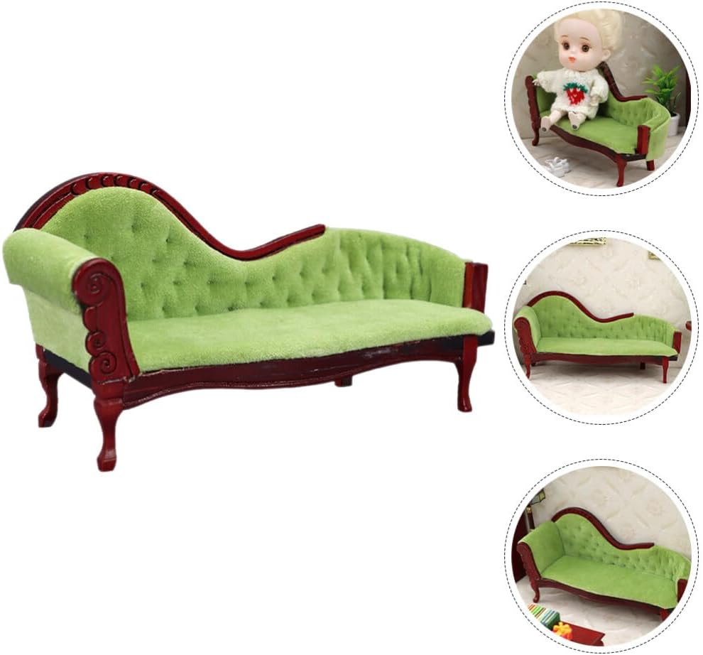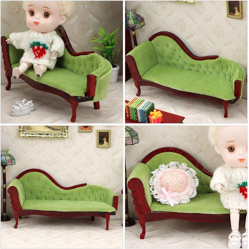 Dollhouse princess couch vintage dollhouse sofa arm chair 1:12 scale wooden miniature living room furniture loveseat mini house decoration accessories for dolls