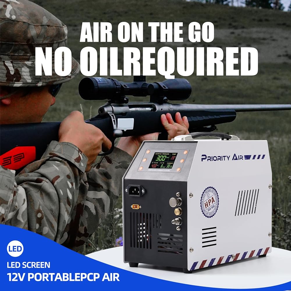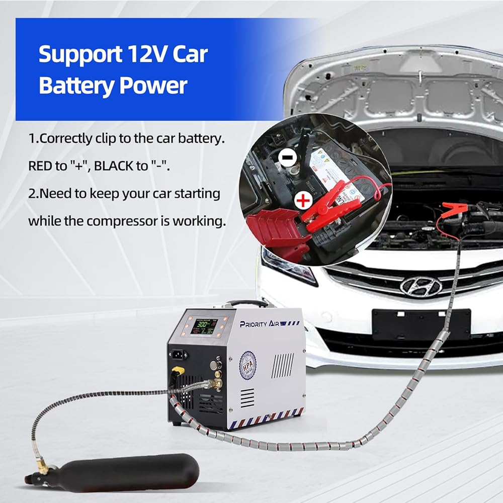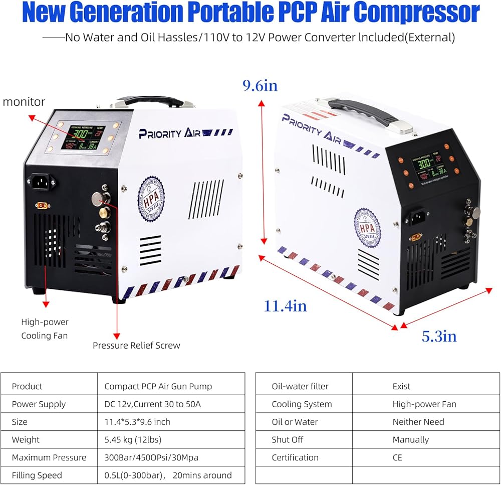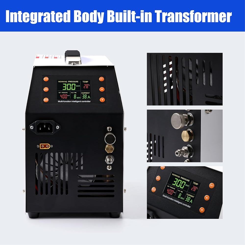 PCP Air Compressor 12v 300bar 4500Psi/30Mpa Built-in Power Adapter Oil Free/Water Free HPA Compressor PCP Compressor with LCD Display Version Auto, For Air Rifle And Scuba Diving Bottle