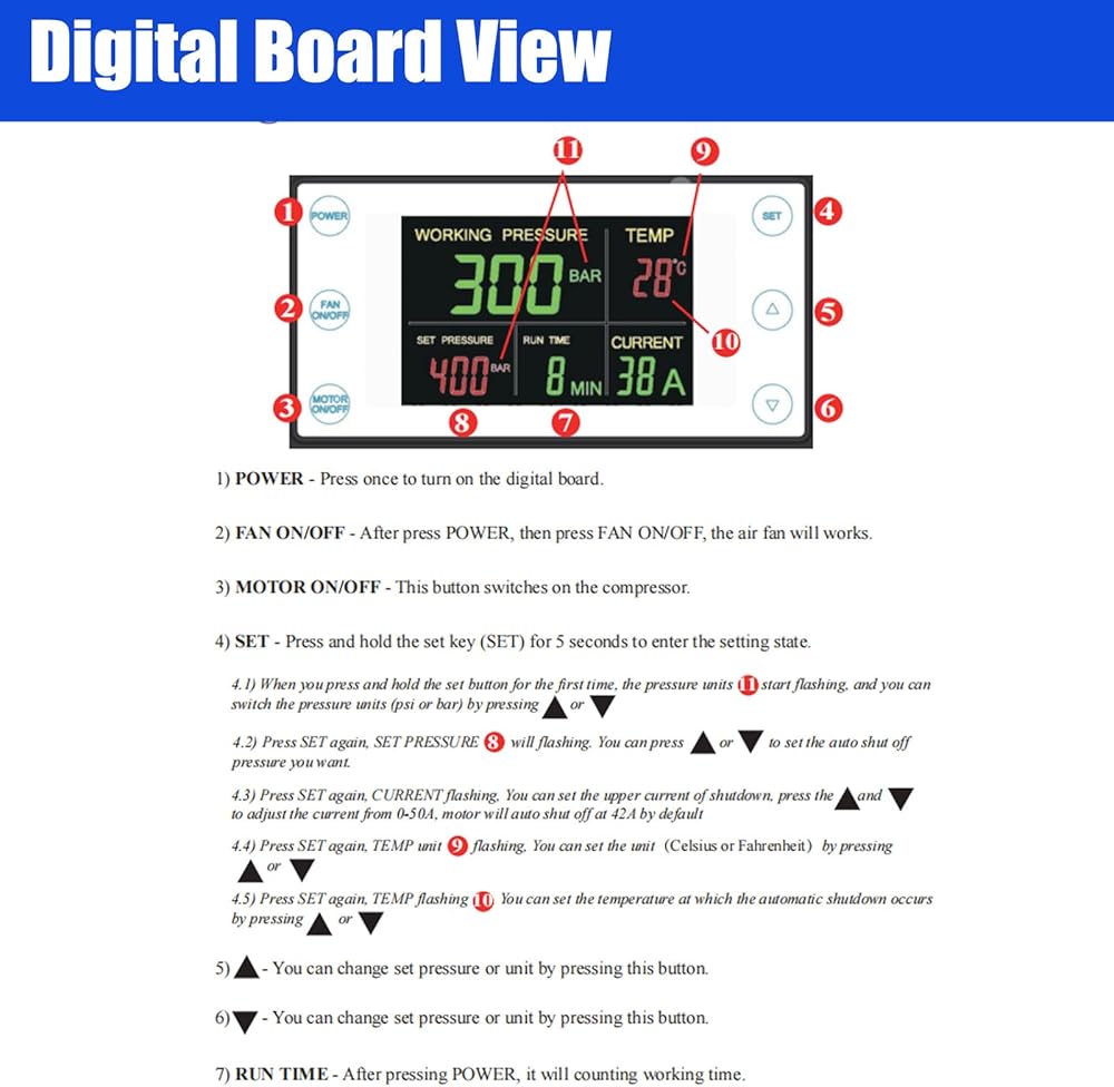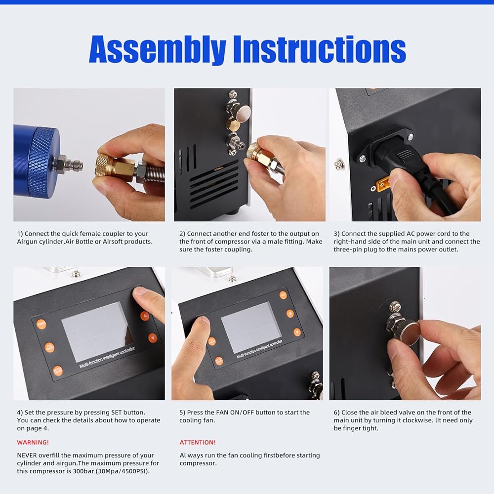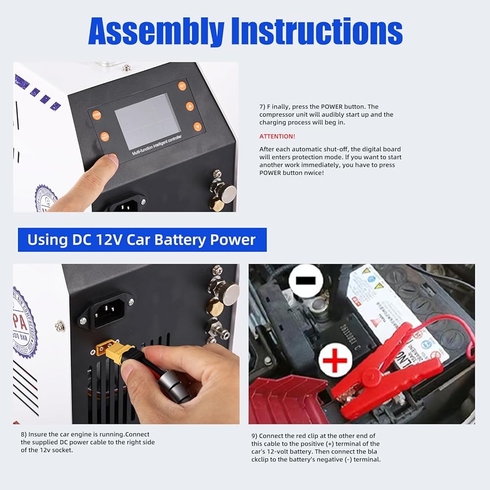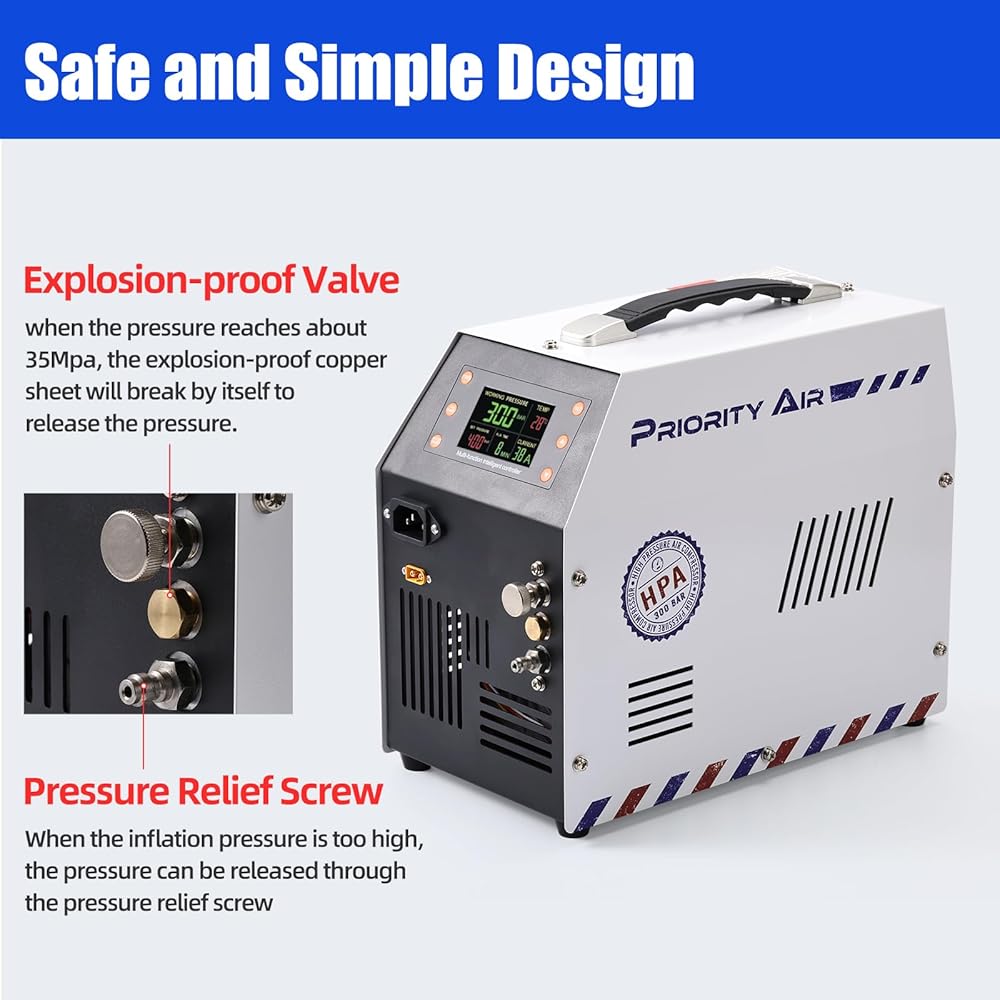 PCP Air Compressor 12v 300bar 4500Psi/30Mpa Built-in Power Adapter Oil Free/Water Free HPA Compressor PCP Compressor with LCD Display Version Auto, For Air Rifle And Scuba Diving Bottle