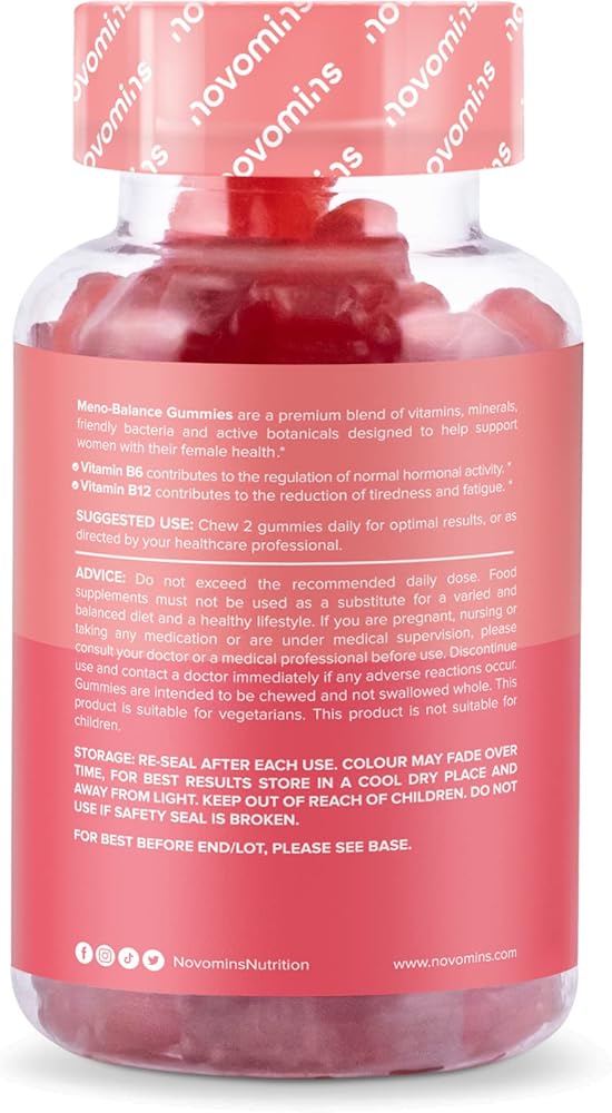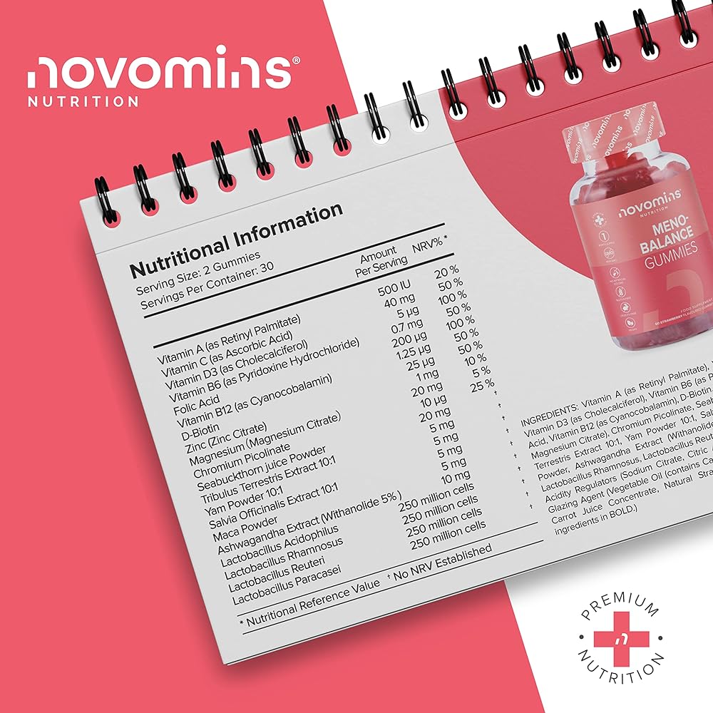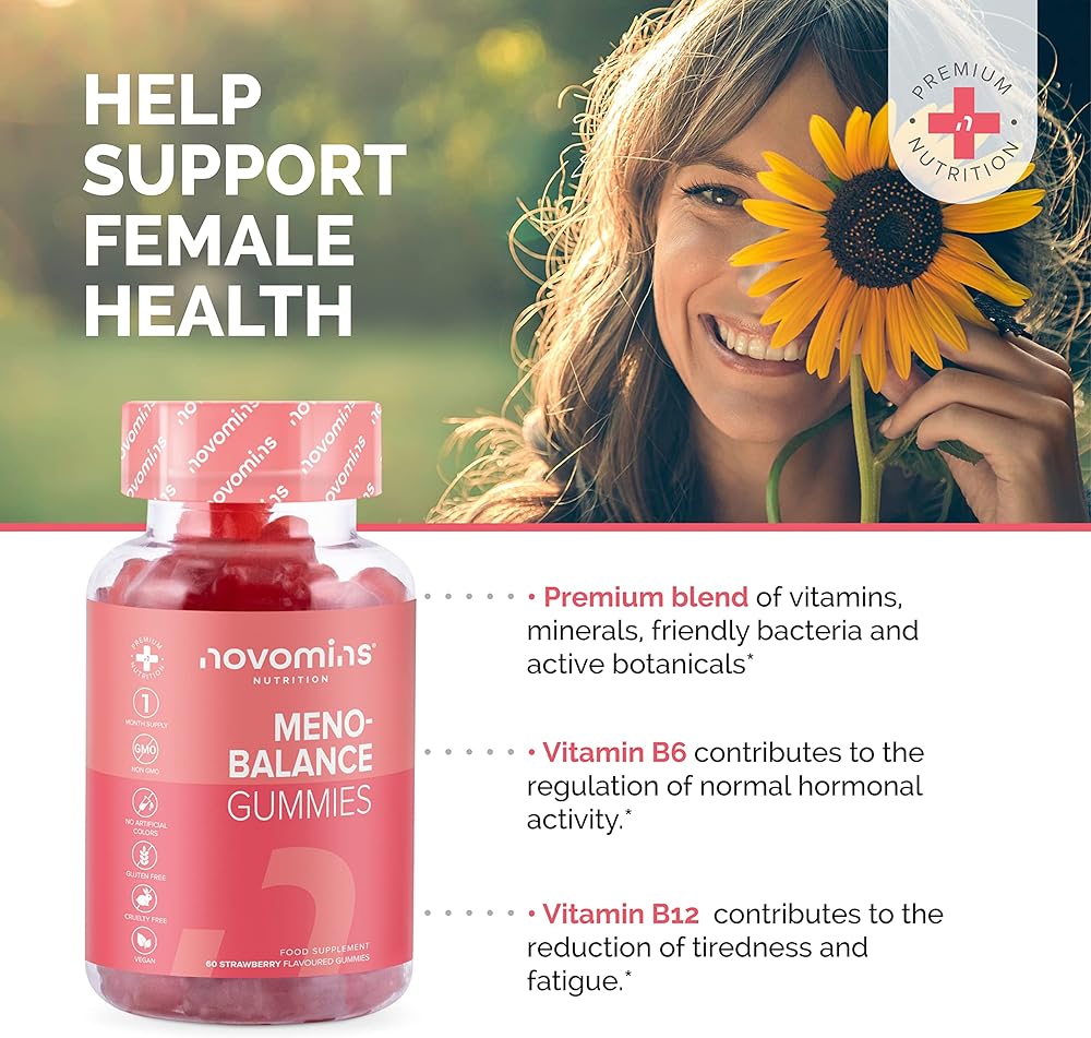 WHY NOVOMINS MENO-BALANCE GUMMIES: Novomins prides itself in bringing you the highest quality supplements whilst being safe and ethically sourced. Our menopause gummies are produced under the strictest manufacturing standards (GMP) with the purest quality ingredient, ethically sourced and easily digestible. We also offer a full money back guarantee if you're at all dissatisfied with our menopause gummies. Simply get in touch via our amazon store