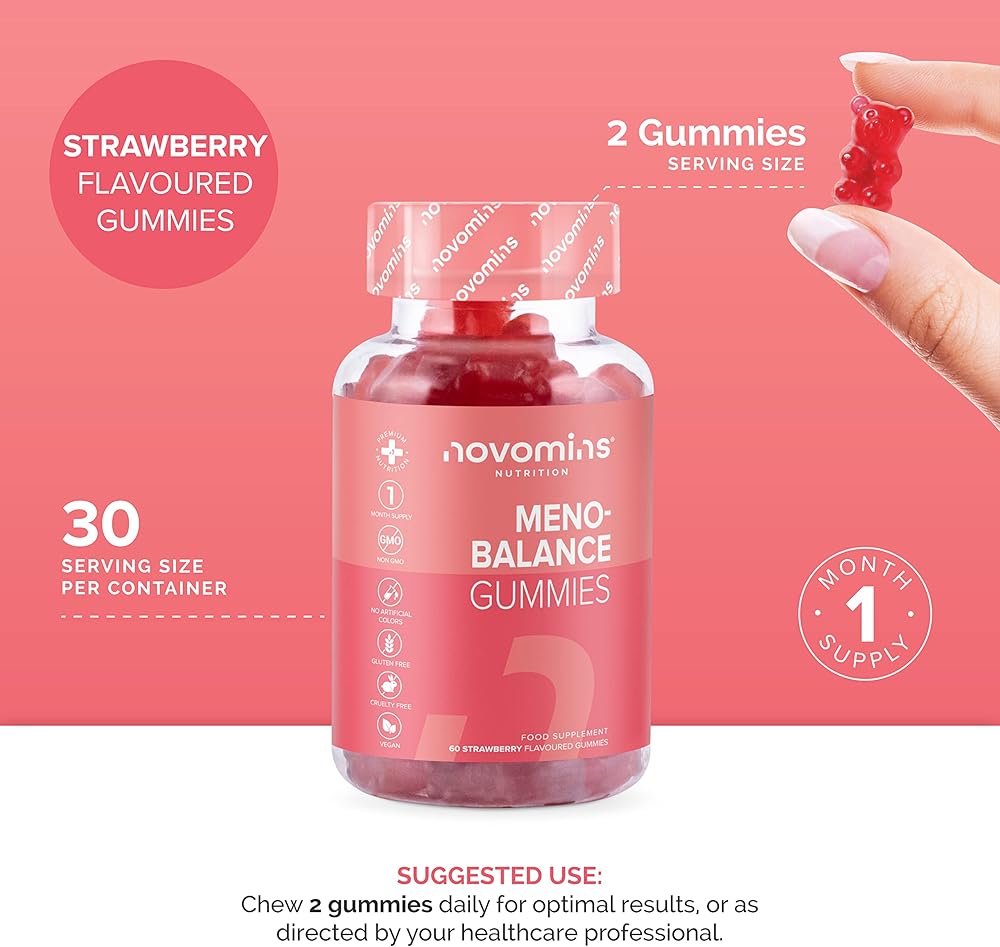 Novomins Meno-Balance Gummies – Menopause Support – Perimenopause and Post Menopause Symptoms – High Strength Supplements with Natural Plant Phytoestrogens– Vegan- Gluten Free
