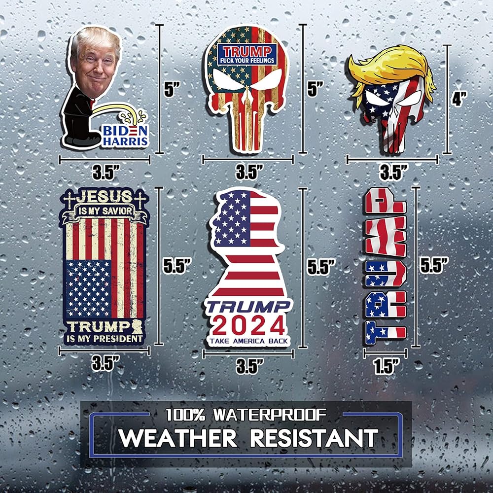 • 🚩WHAT YOU GET - 12 PCS Incredible Vinyl Trump Stickers, and provide a service of Unconditional Refunding.