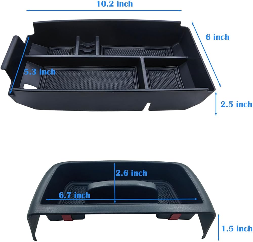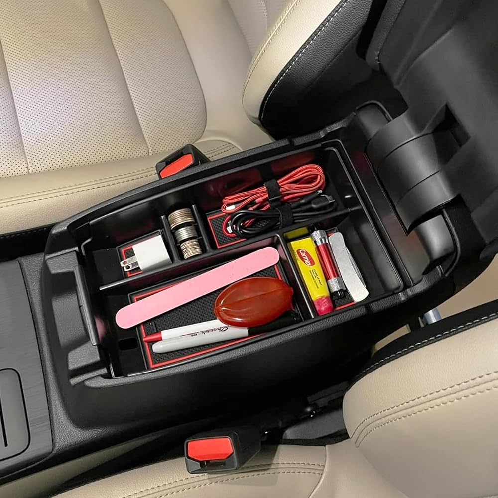 🚗【Customized Design】Center console storage tray perfectly matches the armrest case, the tray is equipped with non-slip rubber pads, the vehicle can reduce the noise when moving the items during the driving process, making the driving more comfortable.