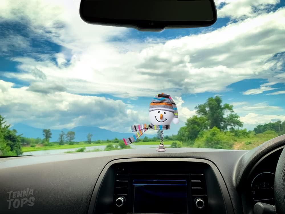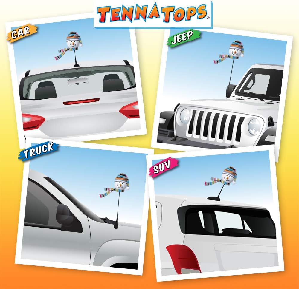 Genuine Tenna Tops Snowman 3 in 1 Auto Accessory: Car Antenna Topper, Rear View Mirror Dangler and Dashboard Spring Stand