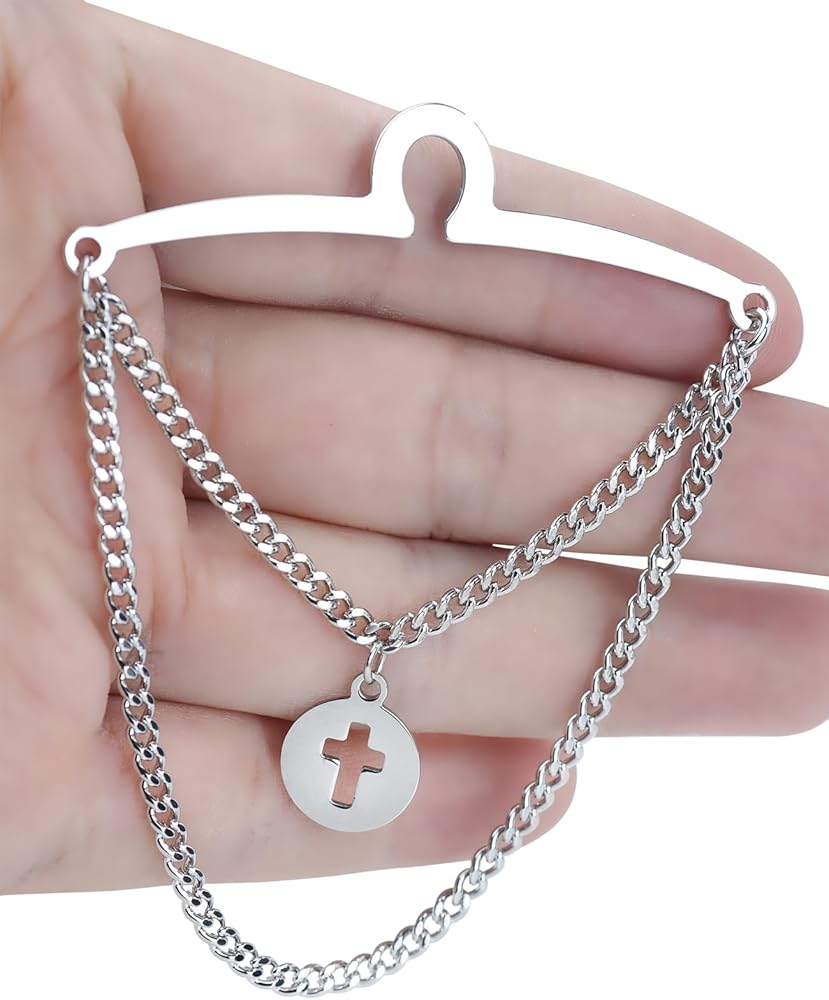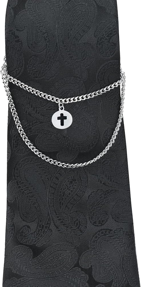 High quality men's tie chains are made of copper with a surface electroplated and polished. With a sturdy spring, it ensures that your tie is straight and stays in place.