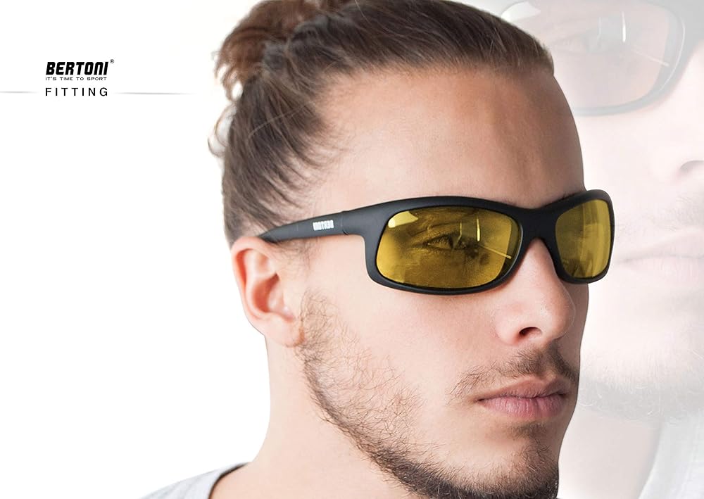 FRAME: Sport Polarized Sunglasses P545 by Bertoni Italy made by unbreakable, flexible, durable and ultralight Polycarbonate, color: mat black, Weight: 16 grames - Size: suitable for all types of faces (narrow to large) - Lens Width 65mm ( wraparound sport windproof lens ) - Lens Height 42mm