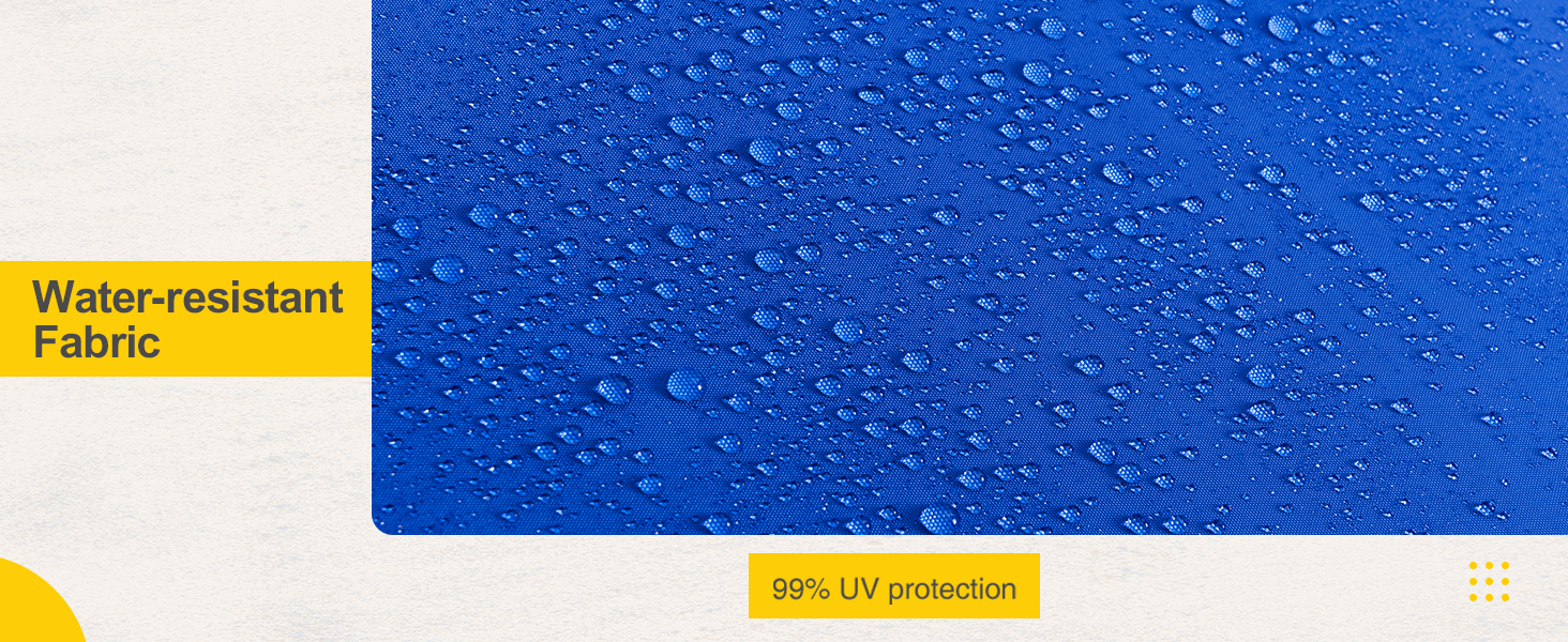 جودة فائقة: حماية من الأشعة فوق البنفسجية بعامل حماية من الأشعة فوق البنفسجية 50+، مقاومة للماء، مقاومة للهب CPAI-84، مظلة علوية من قماش أكسفورد 150D. الإطار مطلي بالمسحوق، ومقاوم للصدأ، وفولاذ مصمم هندسيًا عالي الجودة، مع مجموعة معززة من خلال مسمار مقوى M5 وأجهزة توصيل بلاستيكية من النايلون.