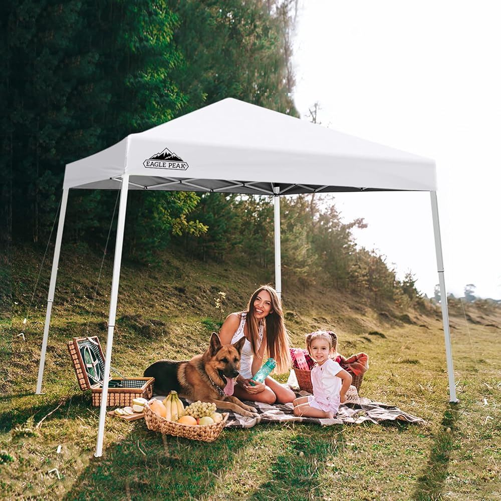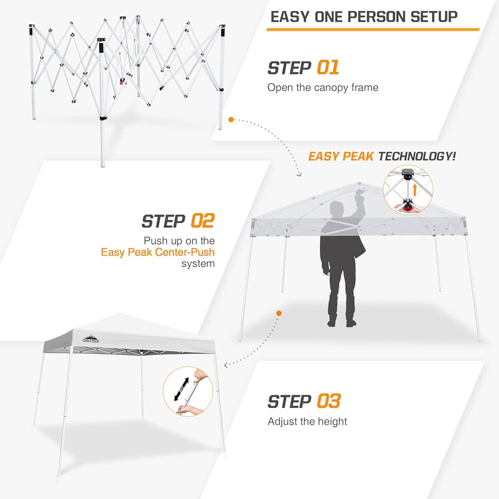 الإعداد السهل: تصميم تقنية الدفع المركزي Easy Peak يمكّن شخصًا واحدًا من فتح وإغلاق المظلة بسهولة من المركز دون متاعب قفل وفتح مزلقات ساق المظلة. ضغطة واحدة بدون قرصة، وستكون جاهزًا للانطلاق!