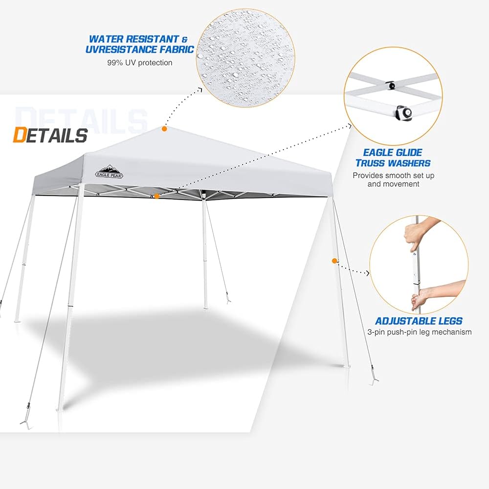 قابلة للتعديل بسهولة: تسمح لك الأرجل السفلية القابلة للتعديل بثلاثة دبابيس بتعديل زاوية وارتفاع خيمة المظلة لتحقيق أقصى قدر من الظل طوال اليوم. 64 قدم مربع من الظل، كبيرة بما يكفي لـ 5 أشخاص. (تصميم الساق المائل هو 10 × 10 بوصة في القاعدة و8 × 8 بوصة في الأعلى).