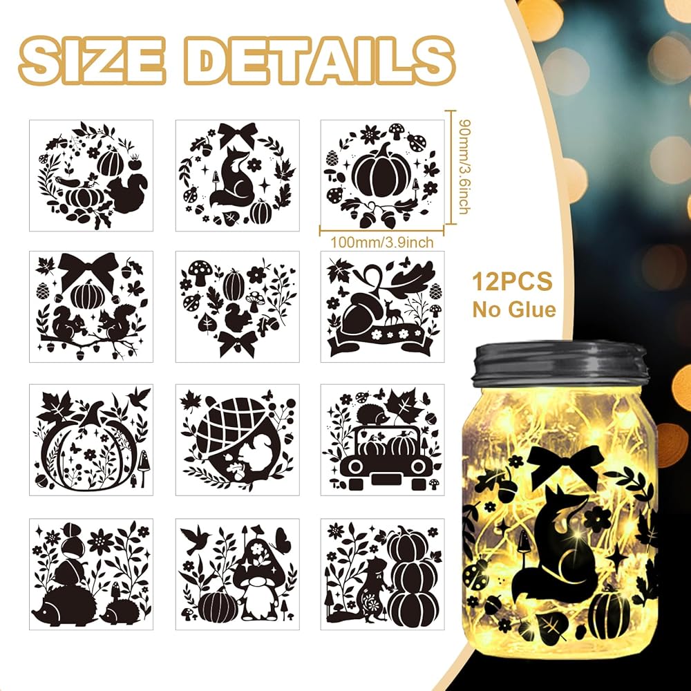 🎆تستخدم على نطاق واسع: صورة ظلية الغابة مناسبة للبرطمانات، وعلب الماسون، والزجاجات الزجاجية، وزجاجة التمني، والذكرى السنوية للزفاف، ومهرجانات أعياد الميلاد، وديكور الحفلات الخارجية، والنافذة، والصور الظلية لمصابيح التخييم، والجدران، والمصابيح الليلية، وملصقات الكرة الكريستالية، وسجلات القصاصات، والبطاقات