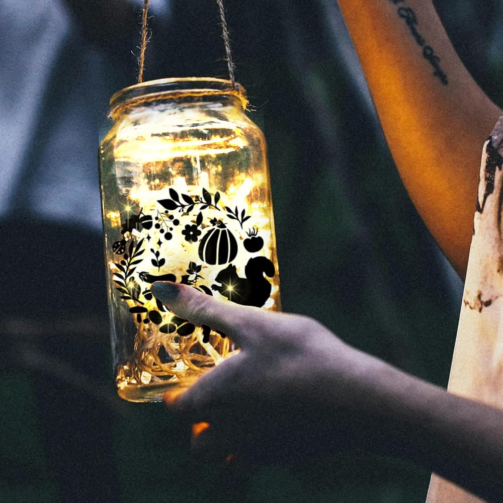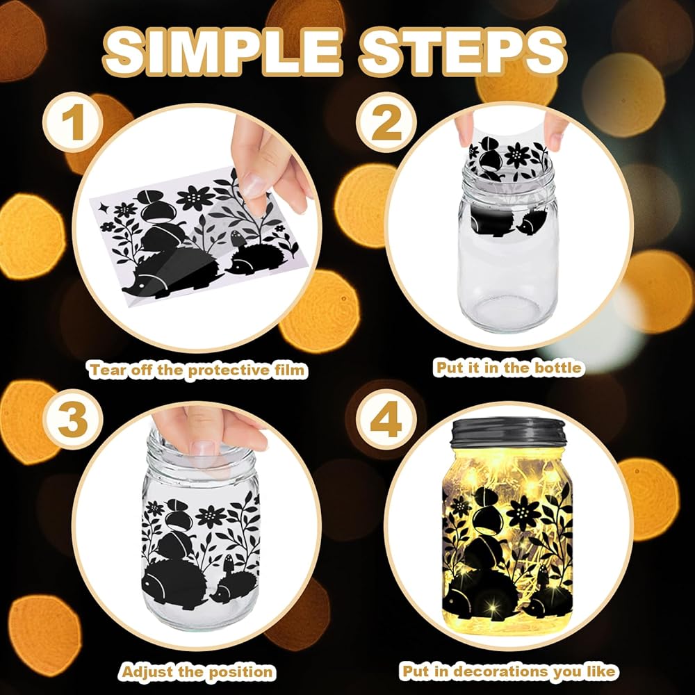 🎆سهلة الاستخدام: يمكنك وضعها في مرطبانات أو لصقها على الزجاج باستخدام الماء، ولكن يلزم وجود غراء إضافي إذا كنت تريد تثبيتًا أكثر ثباتًا.