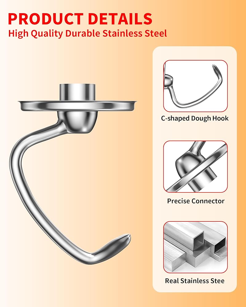 مناسب تمامًا: خطاف العجين البديل هذا مخصص لـ KitchenAid، وسوف يناسب خلاط KitchenAid بشكل آمن ويعمل بسلاسة. وهذا يضمن أن خطاف العجين لن ينثني أو ينكسر تحت الضغط، مما يسمح لك بالعمل مع العجين بكفاءة.