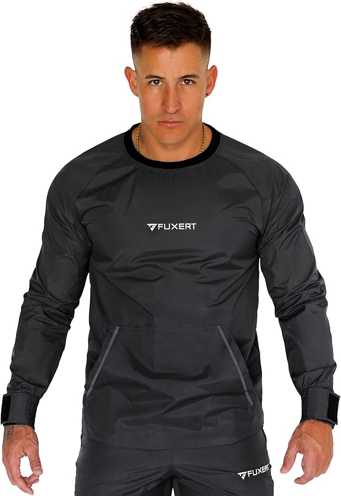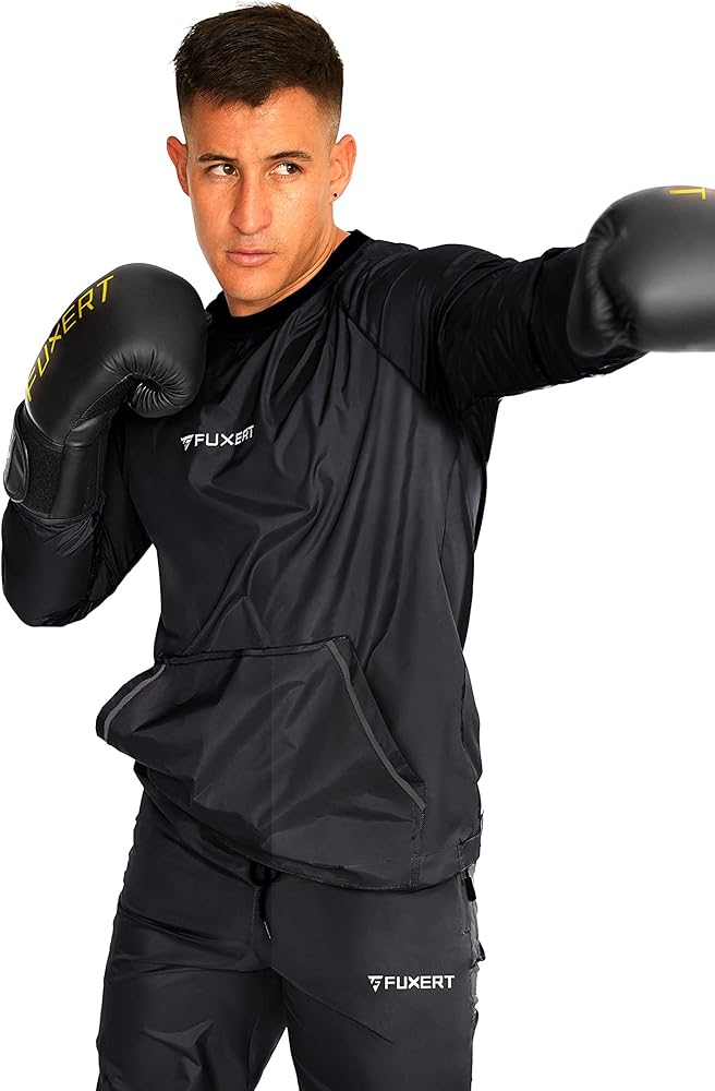 【Sweating Enhancing Fabric】:FUXERT Sauna Suit is designed to help boxers or athletes lose their body extra water weight before a competition, working out with this sweat suit will make you sweat 5 times more than before, helping you burn more calories, let you enjoy sweat during the exercise.