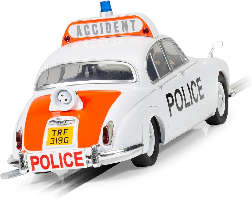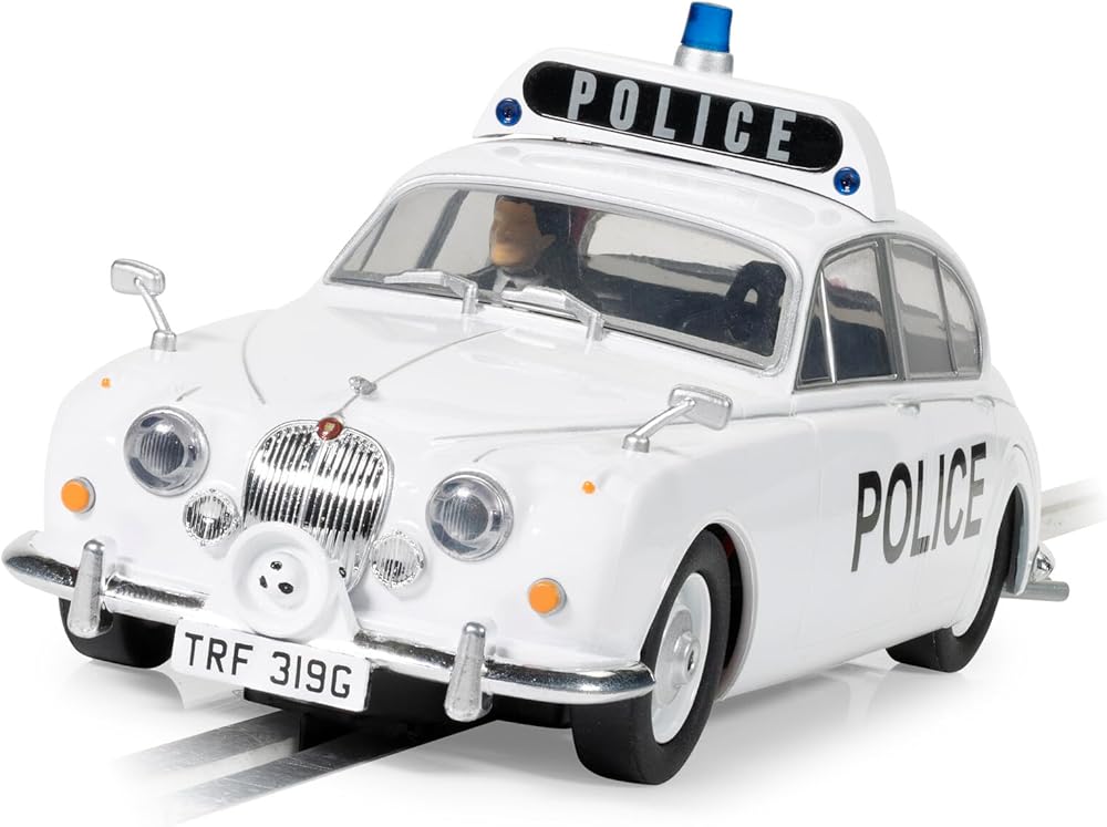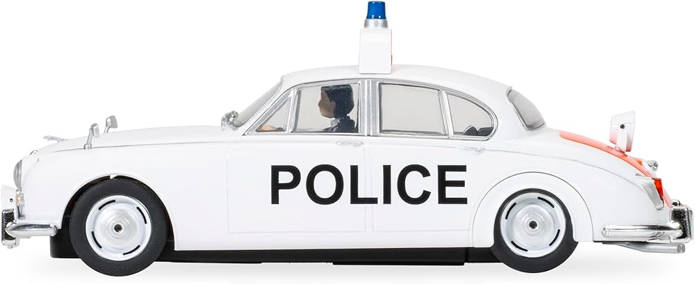 "Grace, Space, Pace." Jaguar might be considered the royalty of luxury sport cars, established in 1922 in England, originally the name of the vehicle before switching to the company name in 1945. It wasn't just on the racetrack that the big Jaguar MK 1 and MK 2s excelled, it was also on the roads. A luxury sedan that performed like a race car. Prized by crooks and bank robbers, complete with enough room for all to join the heist and a big trunk to boot! The Mark II became an easy target as they were known for being one of th fastest cars on the road. The MK2 Jaguar was so adapt at making progress the police were forced to use them too to keep up! This model comes complete with flashing light and various signs, making sure that nobody can miss it speeding up behind them!
