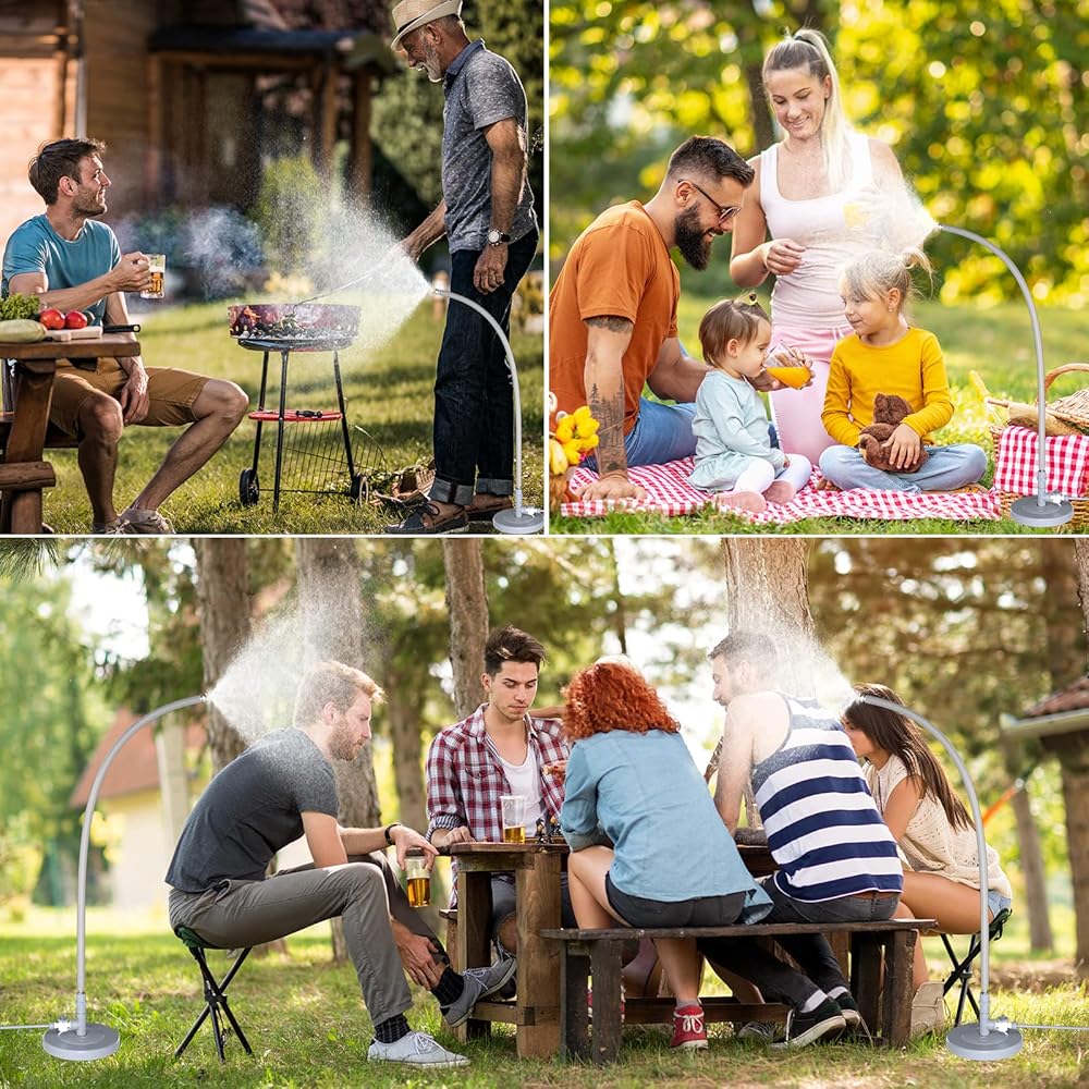 【Versatile Design】 Our portable mister is designed to be versatile and adaptable to your needs. The base of our garden standing mister can be made more stable on the ground by adding water, making it easy to use in a variety of outdoor settings, such as patios and decks. Stay cool wherever you go with our versatile stand misting system.