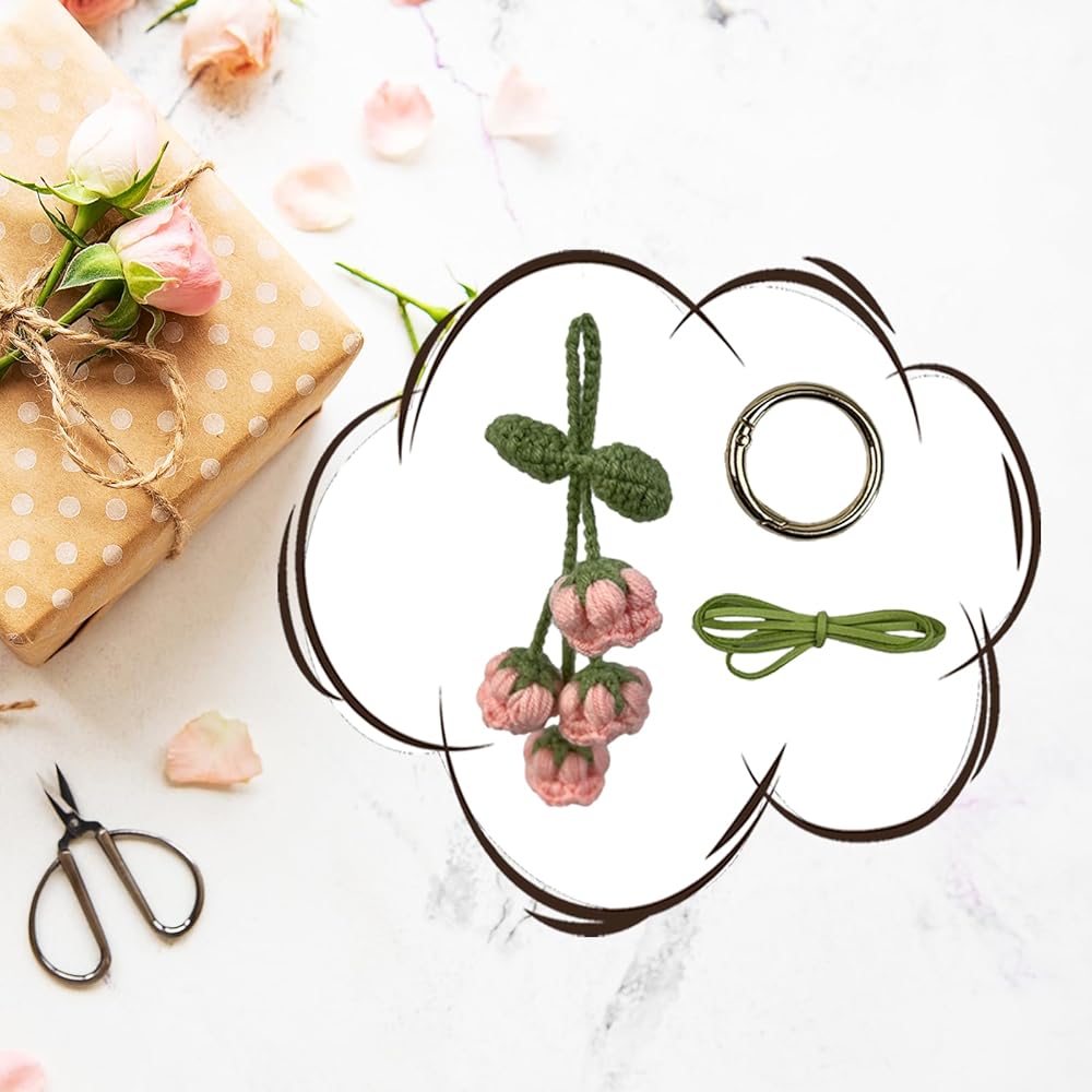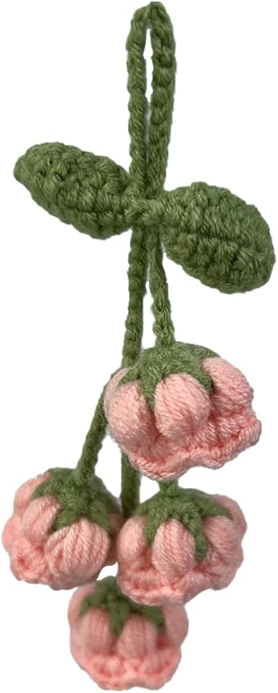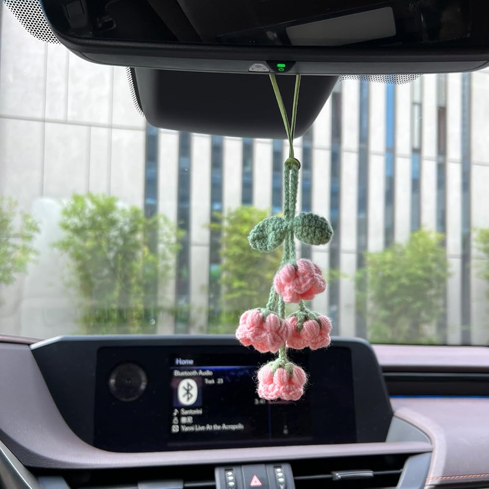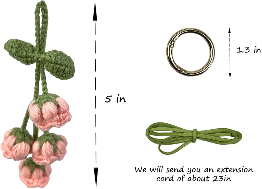 قلادة زخرفية أنيقة: توفر نفحات زنبق الوادي المصنوعة يدويًا من الكروشيه إضافة لطيفة وساحرة لإكسسوارات مرآة الرؤية الخلفية لأي سيارة.