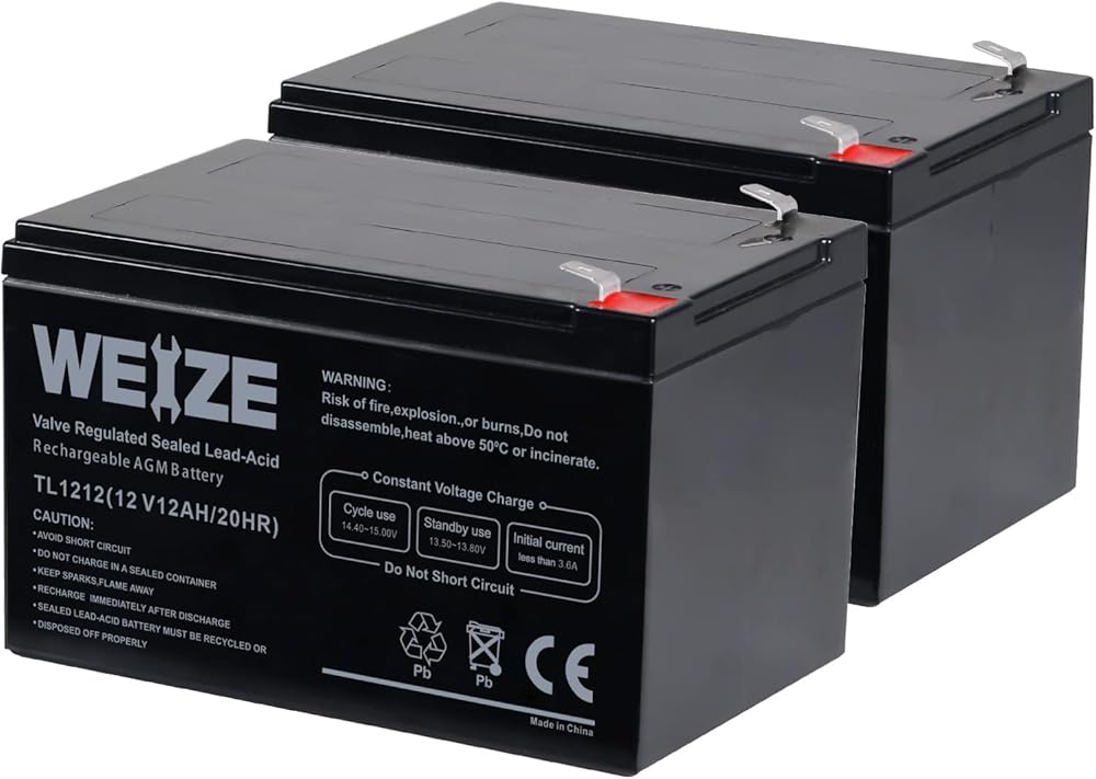 This is a promotional battery set which includes: Two 12V 12AH Sealed Lead Acid Batteries. 12 Volt 12 Amp Sealed Lead Acid are maintenance free and with non-spillable design.F2 Terminal,Dimension: 5.94*3.86*3.98 inch. They are ideal for both cycle and standby use and can operate in any orientation.It Rechargeable battery meets or exceeds the OEM sla battery specifications. We supply only brand new, factory fresh, high quality batteries.