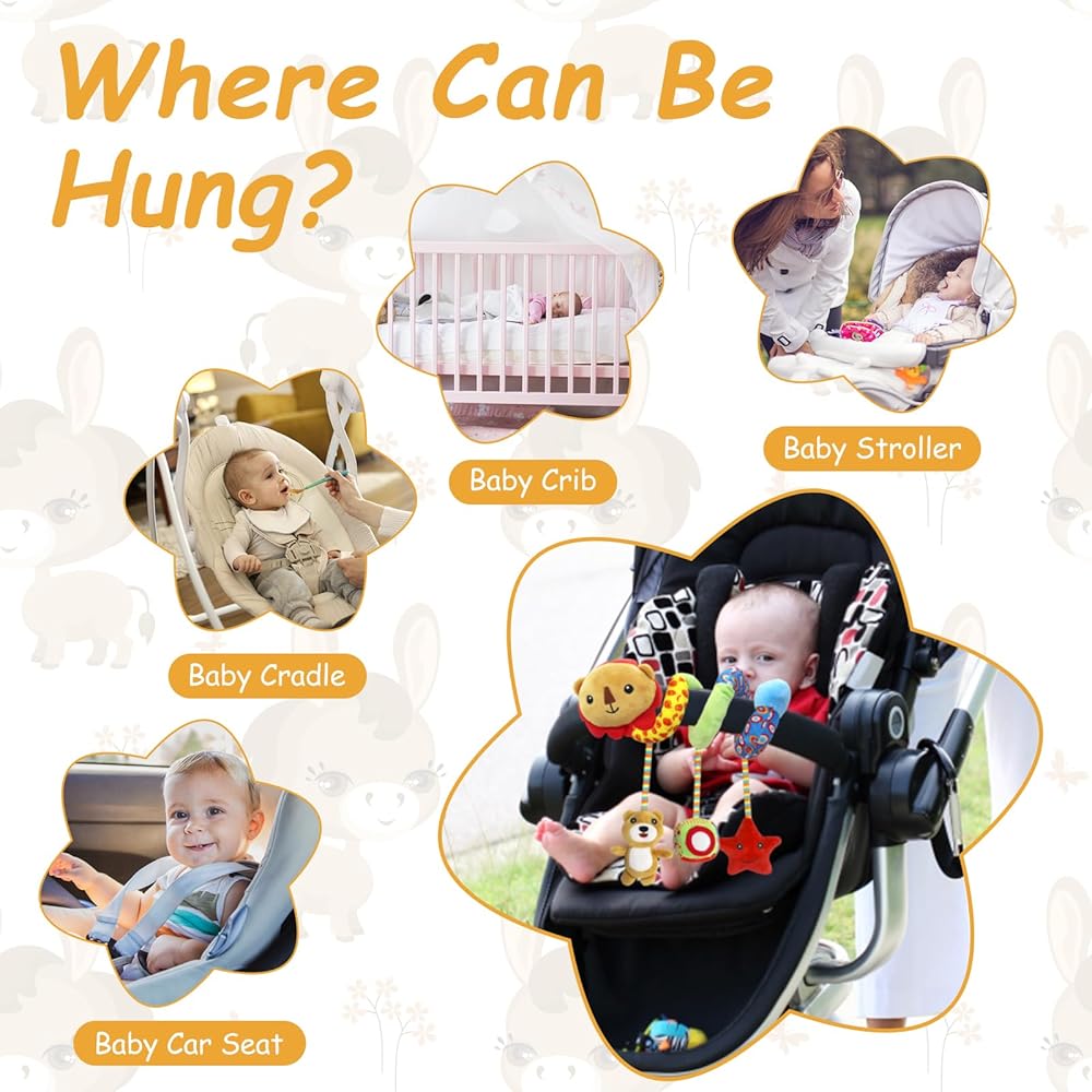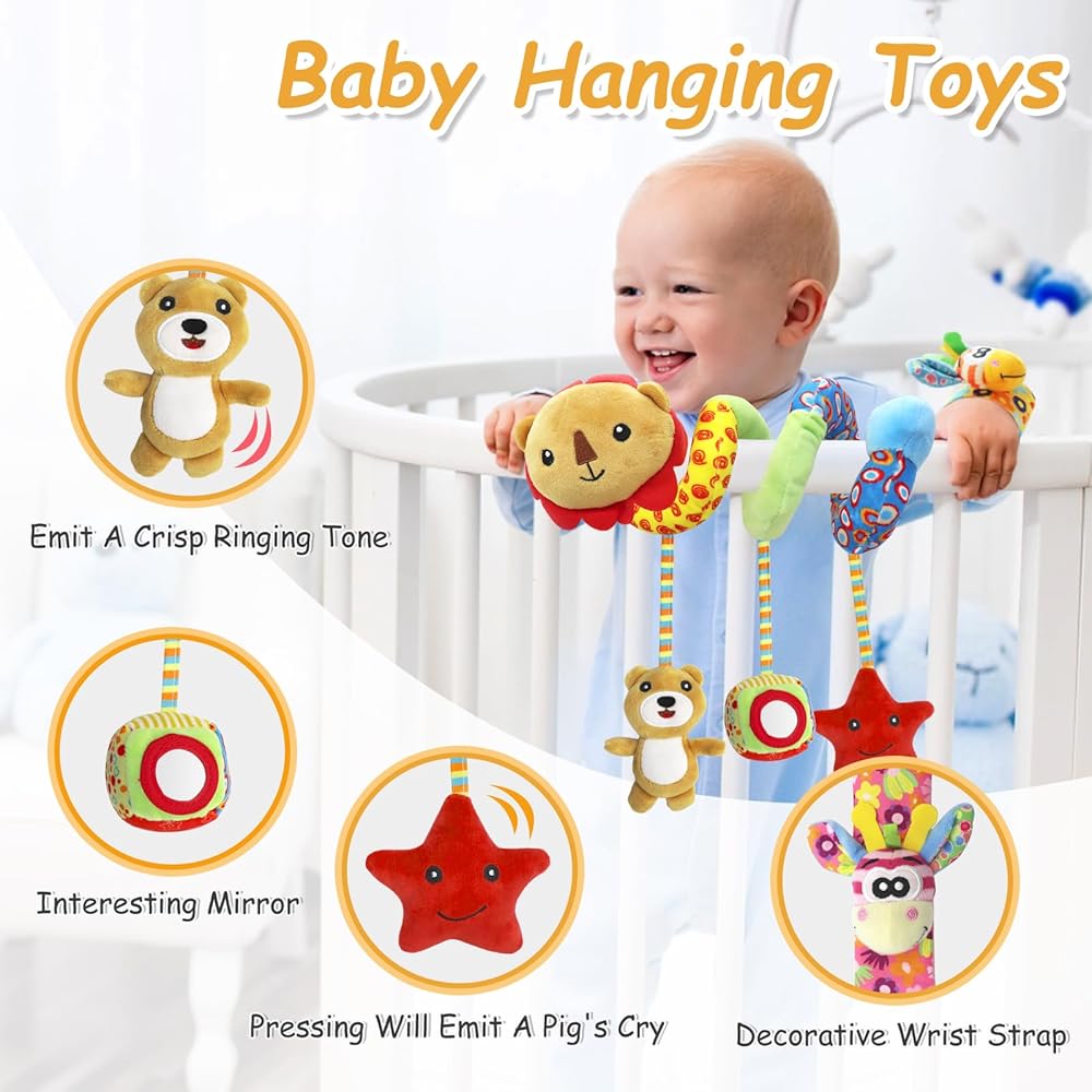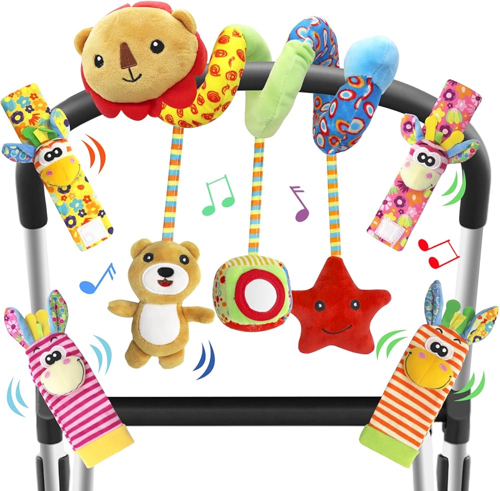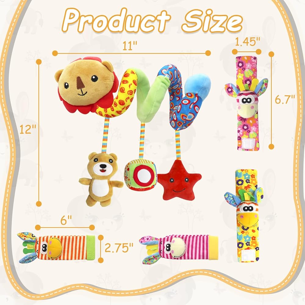 The baby rattle socks toy includes 2Pcs of baby wrist rattles and 2Pcs of foot rattle toy and 1pc car seat toys