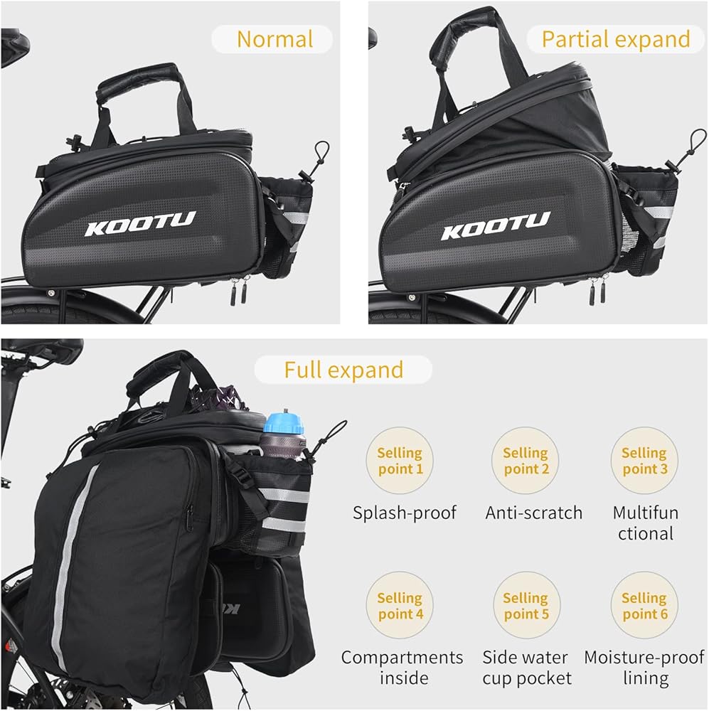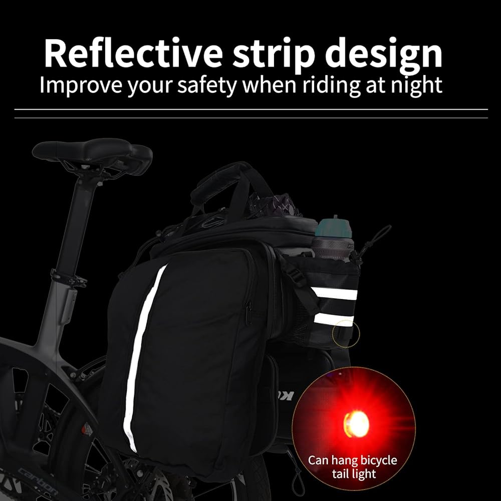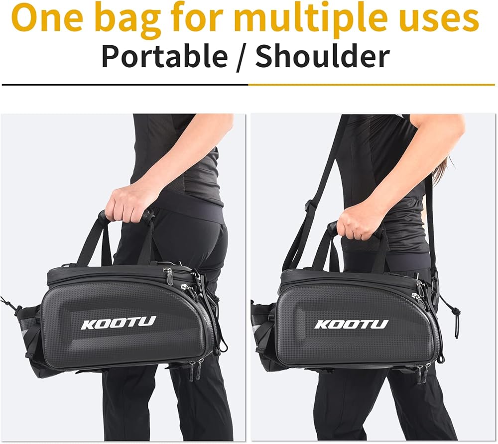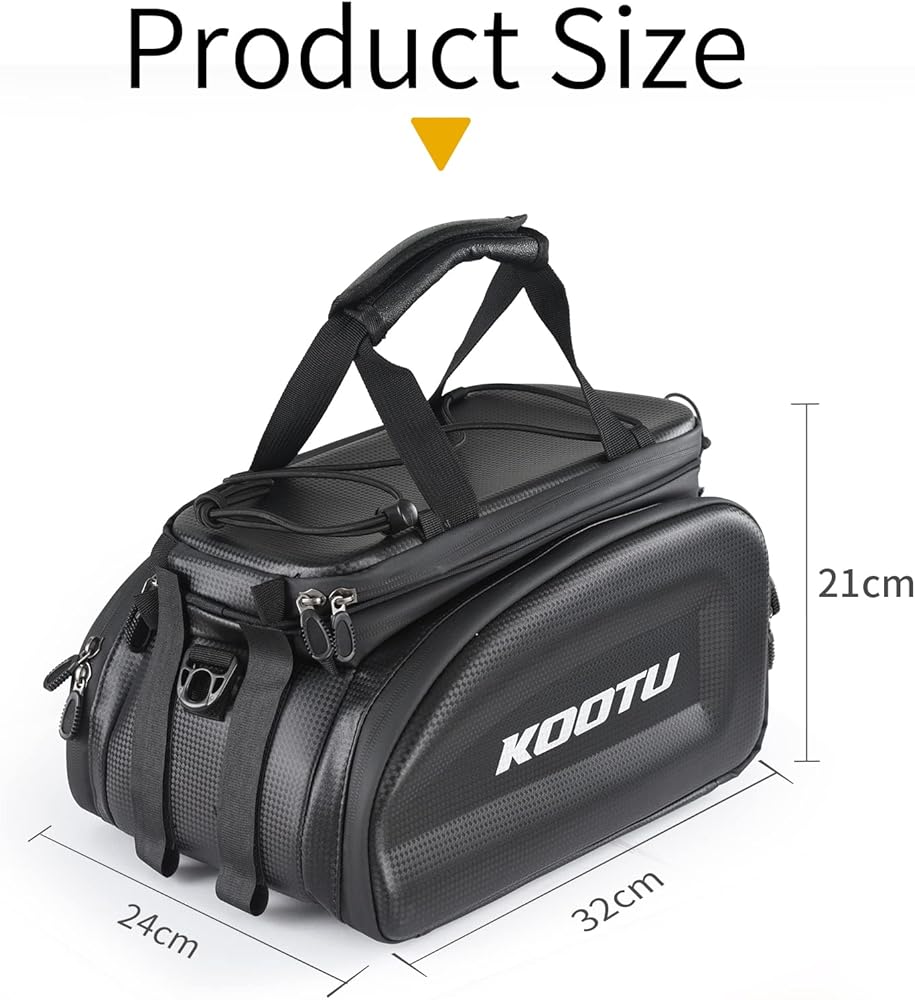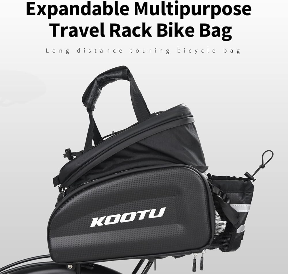 حقائب حامل الدراجة من KOOTU، حقيبة جذع الدراجة مقاومة للماء مع حزام اليد، جلد كربوني قابل للتمديد للدراجة الخلفية وحقيبة الدراجة لركوب الدراجات والتنقل والتخييم والسفر في الهواء الطلق