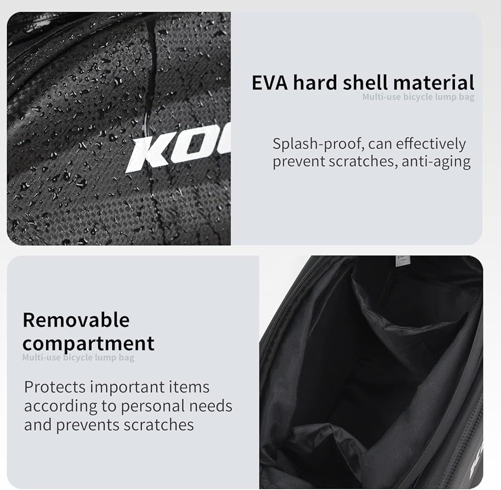 • 【تصميم إنساني】: تحافظ الحجرة الرئيسية لسلال الدراجات على الكاميرا أو الهاتف منفصلاً عن العناصر الحادة الأخرى مثل المفاتيح أو أدوات الدراجة. والأكثر من ذلك، فإن الحجرة الرئيسية مبطنة في كل مكان لحماية مقتنياتك بشكل جيد. جيب زجاجة المياه الموجود في الخلف مع تصميم برباط قابل للتعديل مفيد لتجنب سقوط زجاجة المياه أثناء الرحلة الوعرة.