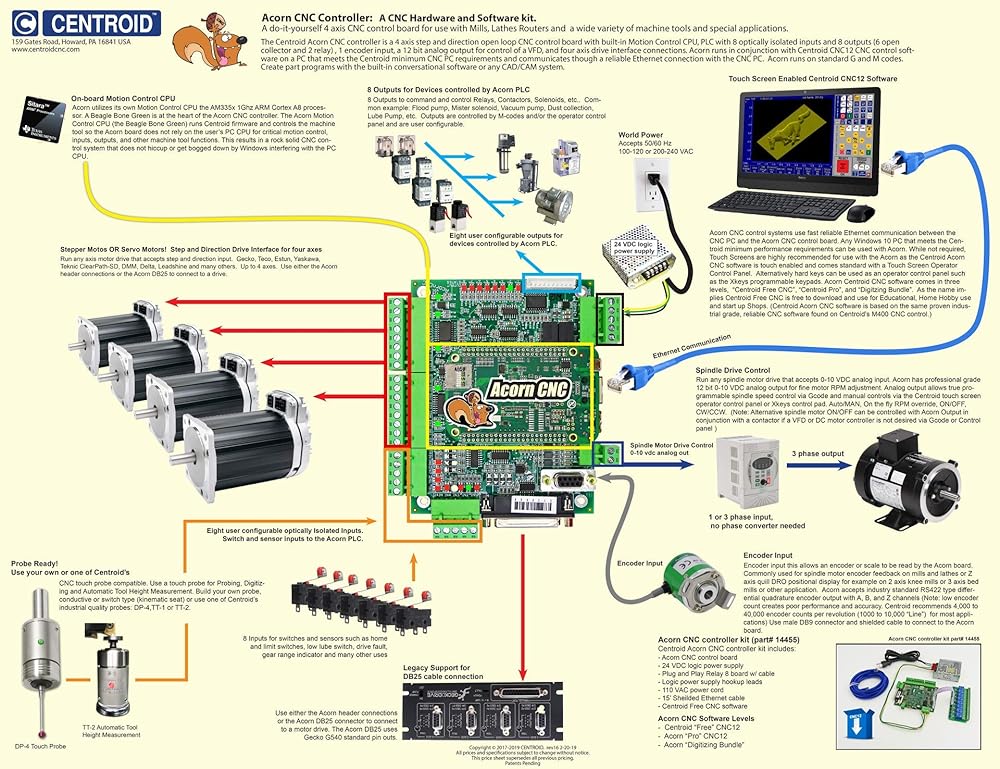 Centroid 4 axis Acorn DIY CNC motion controller kit (REV 4) with CNC software, replaces MachMotion,WinCNC,Mach3,EMC2,KCAM4,Smooth Stepper