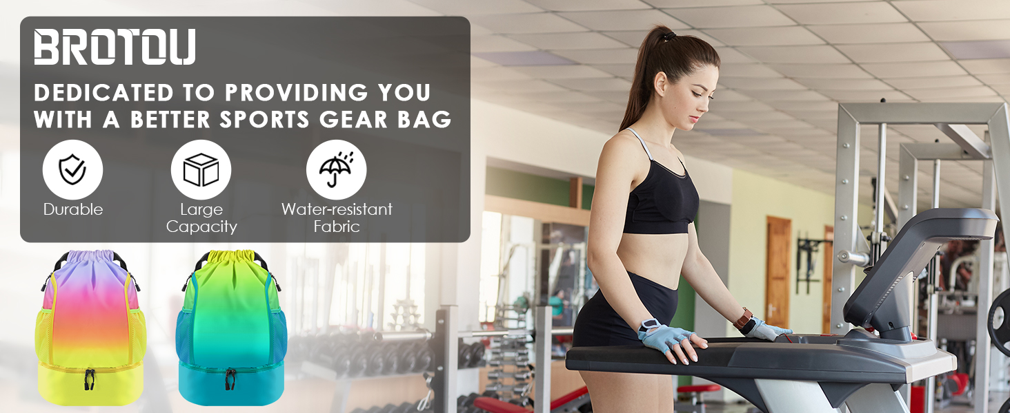⚽【حقيبة متينة برباط مقاوم للماء】حقيبة ظهر الصالة الرياضية برباط من BROTOU مصنوعة من نسيج البوليستر والنايلون 1080D المتين، بسحاب ناعم، وهو خفيف الوزن وقوي بما يكفي لمقاومة المطر والأوساخ والغبار. حقائب رياضية للرجال/النساء لحمل المعدات الرياضية بسهولة.
