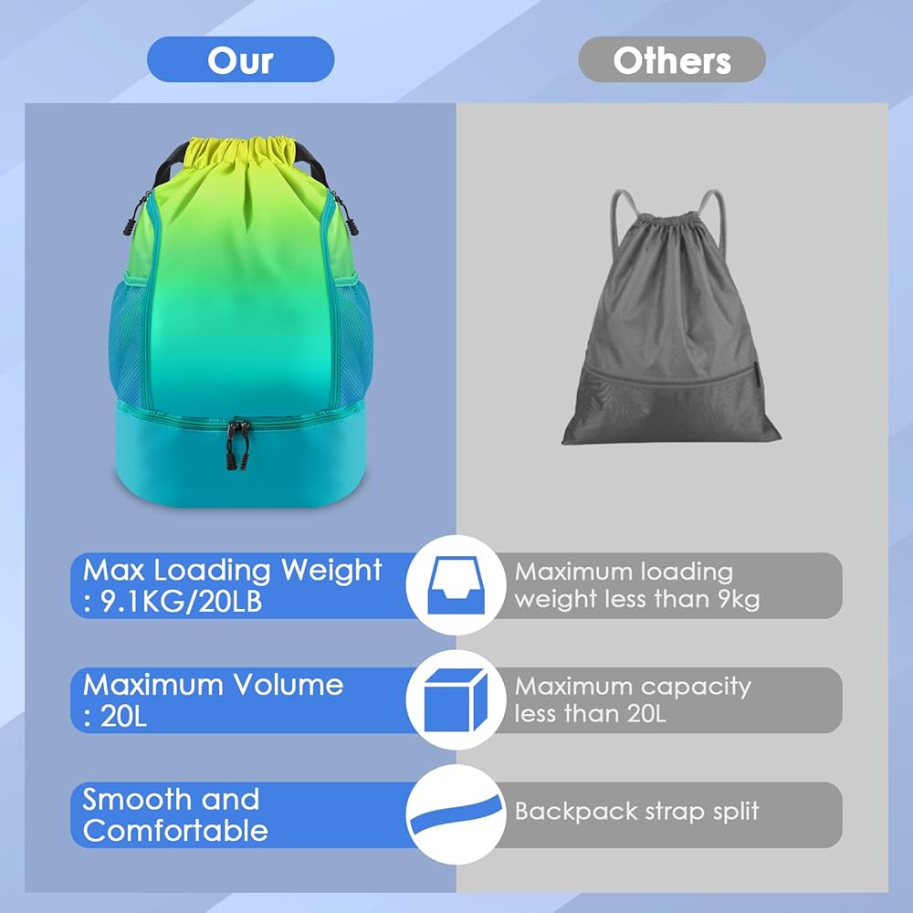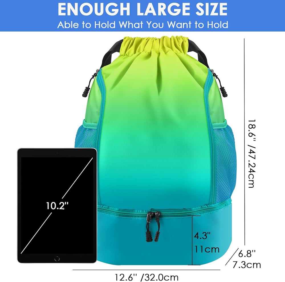 ✅【تصميم متعدد الأقسام】تحتوي حقيبة الظهر للسباحة المقاومة للماء على جيوب شبكية على كلا الجانبين للمظلة وزجاجة المياه ونظارات السباحة. يوجد أيضًا جيب بسحاب على الجانب لتخزين مفاتيح المفاتيح أو المحفظة أو الهاتف الخلوي أو الأشياء الثمينة الصغيرة وما إلى ذلك.