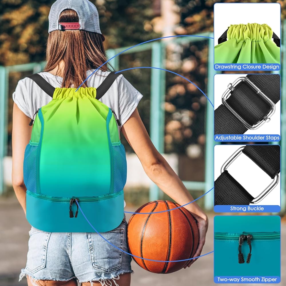 🏀【حقيبة ظهر مع حجرة للكرة والأحذية】يمكن أن تحتوي الحجرة الرئيسية على كرة السلة أو الكرة الطائرة أو كرة اليوجا أو الكرات الأخرى بالإضافة إلى الأغراض الشخصية مثل الكمبيوتر المحمول أو iPad أو الجيرسي أو الكتب وما إلى ذلك. حجرة سفلية لحمل حذائك الرياضي والمناشف (أحذية رياضية عالية الجودة) لا ينصح).