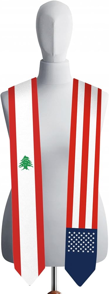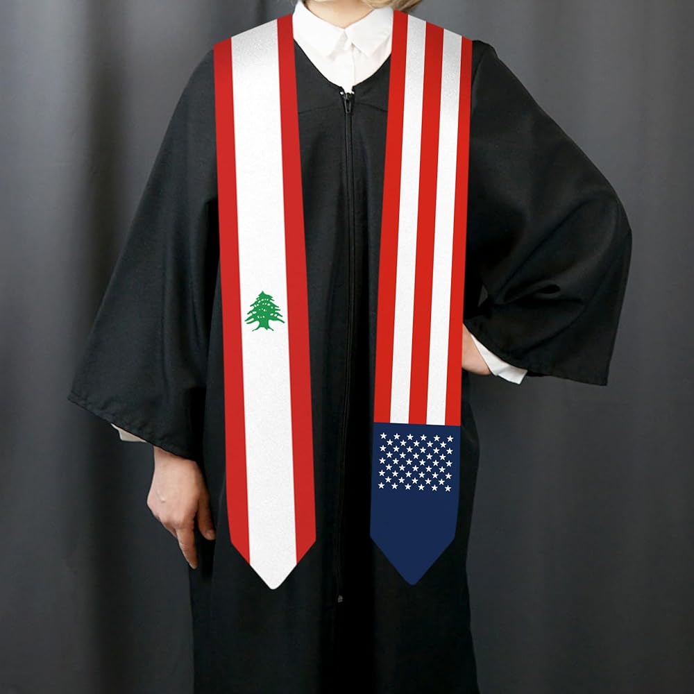 وشاح التخرج بعلم لبنان وعلم الولايات المتحدة الأمريكية مقاس 72 بوصة للجنسين البالغين وشاح التخرج فئة 2024 (لا يشمل ثوب البكالوريا وقبعة)