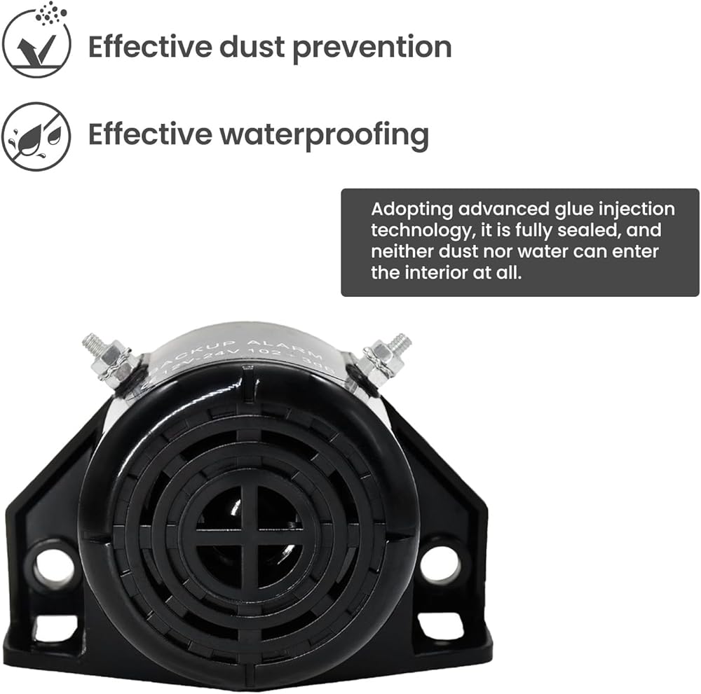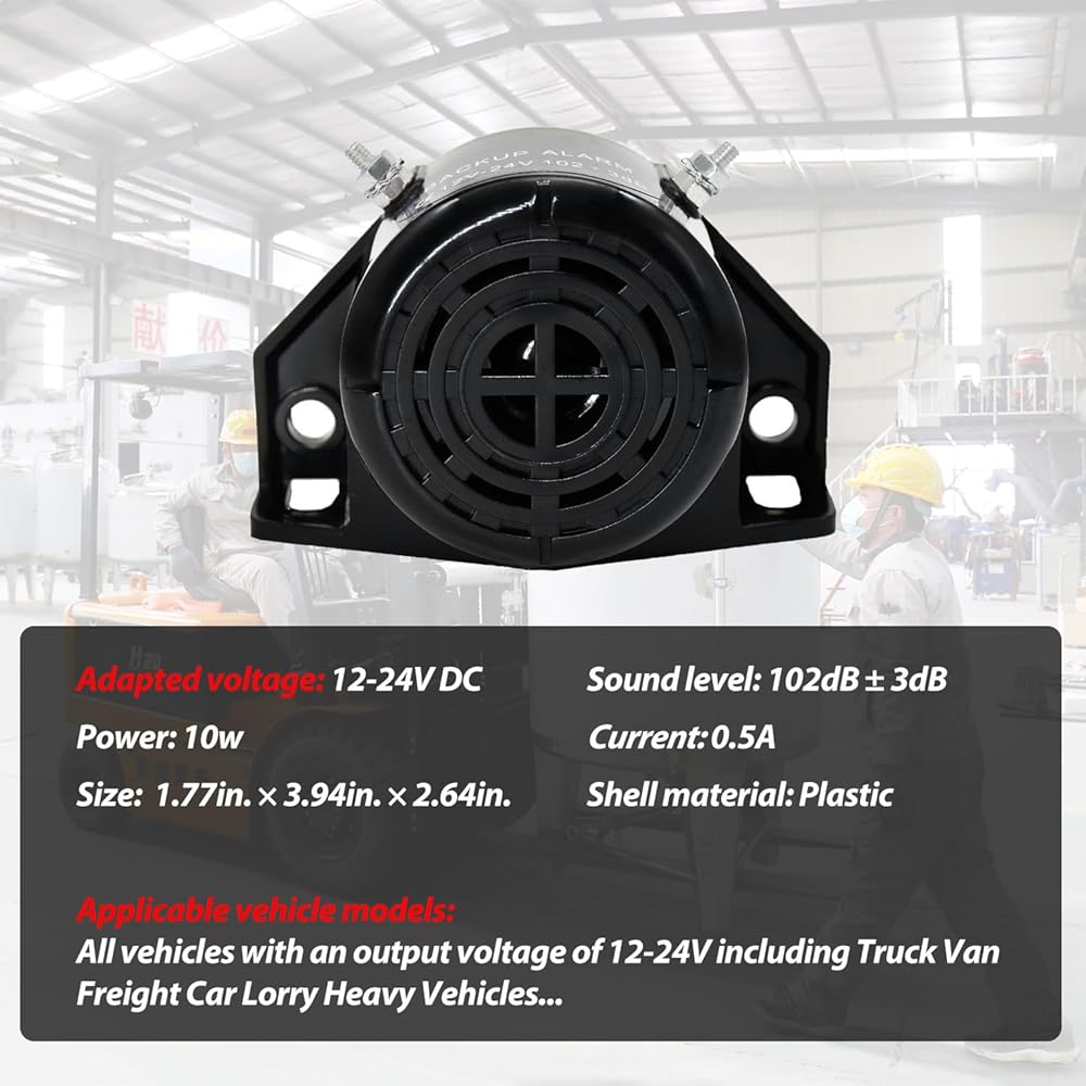 HIGH SOUND LEVEL: Our backup alarm can make a powerful beeping sound that is 102(±3)dB. Nobody will ignore this beeping sound when you are reversing vehicle.