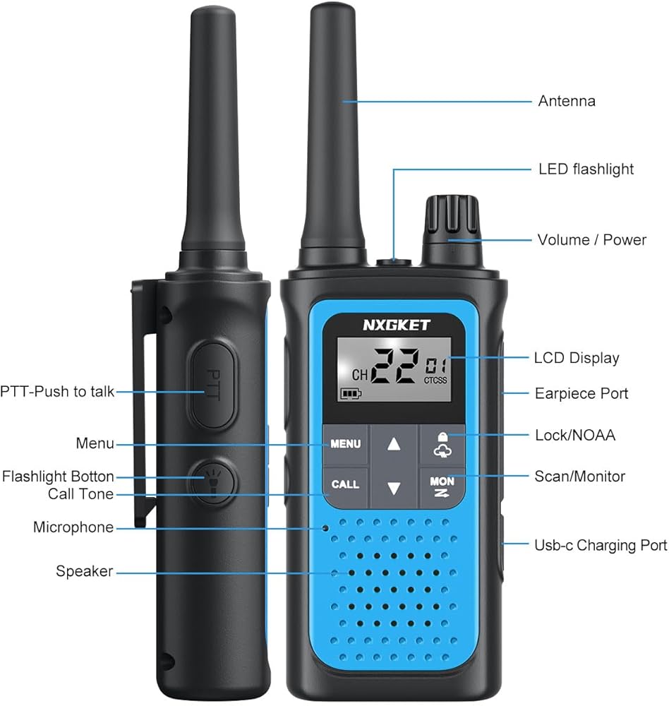 مثالي لجميع الأعمار للاستخدام: يعد جهاز الاتصال اللاسلكي NXGKET أداة اتصال رائعة للرجال والنساء والأطفال وكبار السن للتحدث. إنه يوفر اتصالات طويلة المدى وهو أمر جيد للتزلج والمشي لمسافات طويلة وركوب الدراجات والتخييم والرحلات البرية والرحلات البحرية والمواقع التجارية ومواقع العمل. ستتمتع بالمرونة اللازمة لنقل الرسائل دون إزالة الراديو من حزامك أو حقيبة الحمل.