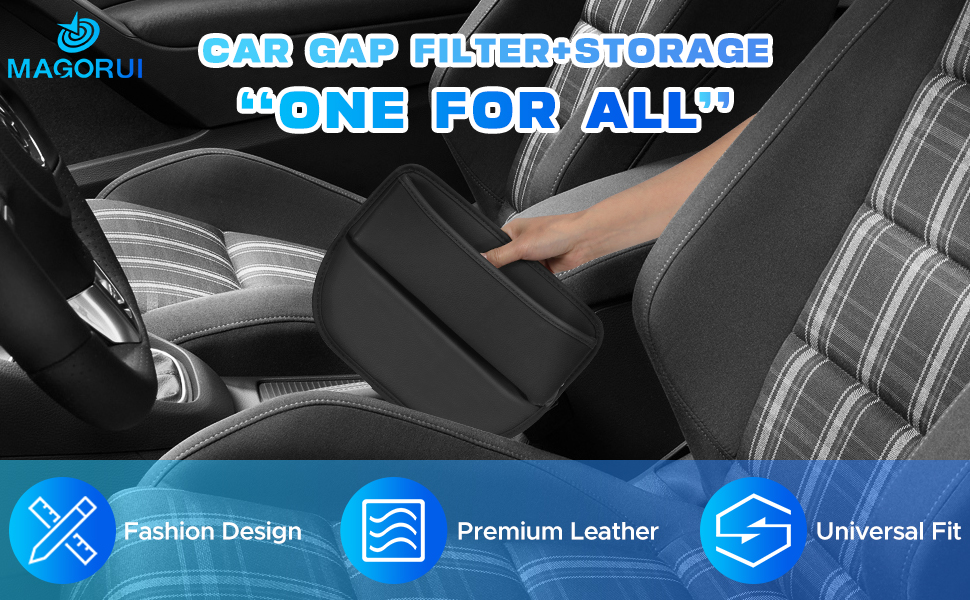 Good Material----Car seat organiser, car seat gap filler, car seat organiser front seat gap filler, made of high quality PU leather, friendly materials, sturdy, super durable, soft, will not scratch your items and can be used for a long time.