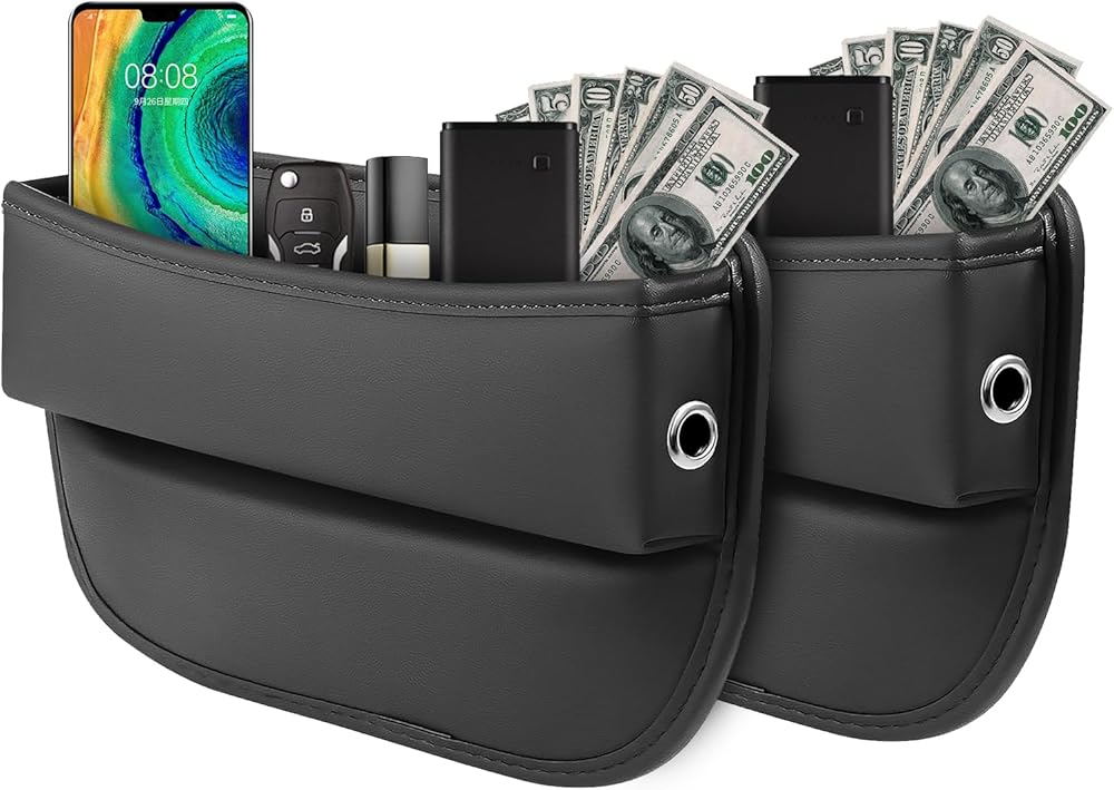 Design and Safety,Easy to Install - This seat gap filler fits the car seat gaps perfectly. It will not shake when you brake suddenly, because it is adjustable from 0.7 to 1.2 inch to fill the gaps. The inside sponge has good resilience, it helps the car storage organizer fixed firmly and correctly.