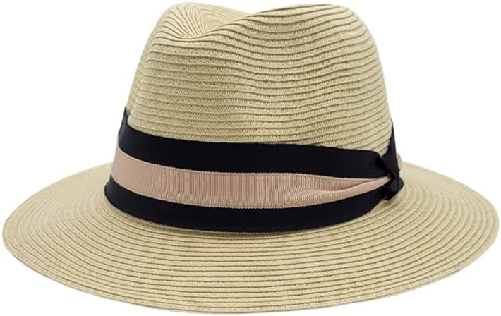 فيدورا من قش جنيف للنساء مع شريط بلونين، أسمر/أسود، مقاس واحد