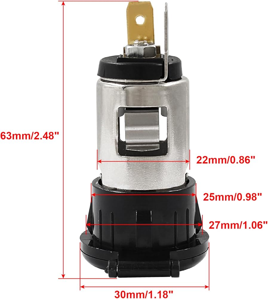• High-Quality Material: The cigarette lighter socket is constructed with corrosion-resistant materials. The high-quality construction ensures resistance to corrosion, high temperature, low temperature, and flame-retardant properties.