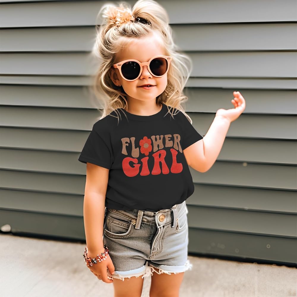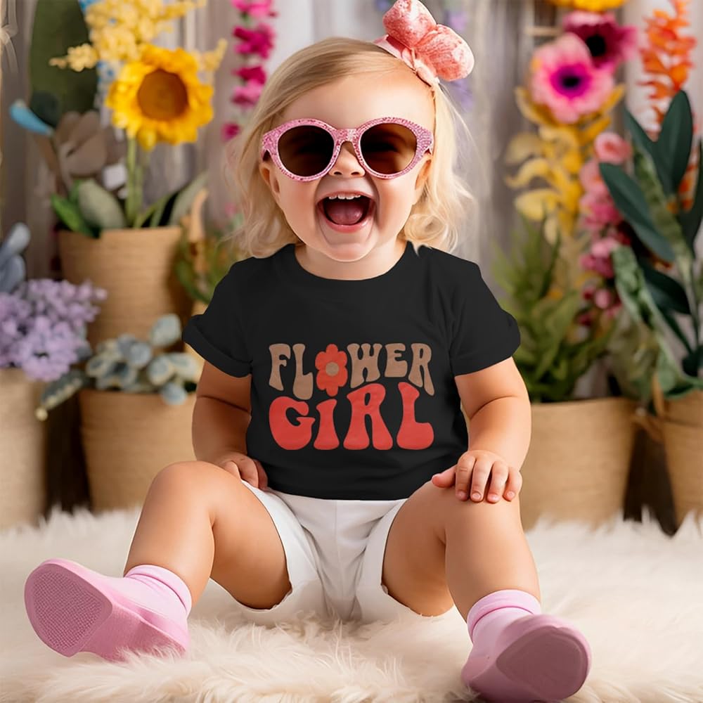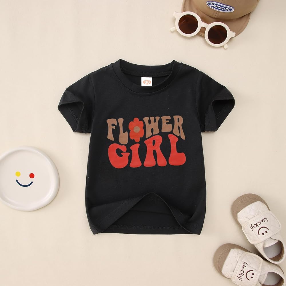 ☀ 【التصميم】تي شيرت صيفي مزين بالزهور للفتيات الصغيرات، تي شيرت لطيف مطبوع عليه زهرة Girl، تصميم دائري كلاسيكي وأكمام قصيرة، متوفر بـ 4 ألوان مشمش/أبيض/أسود/وردي.