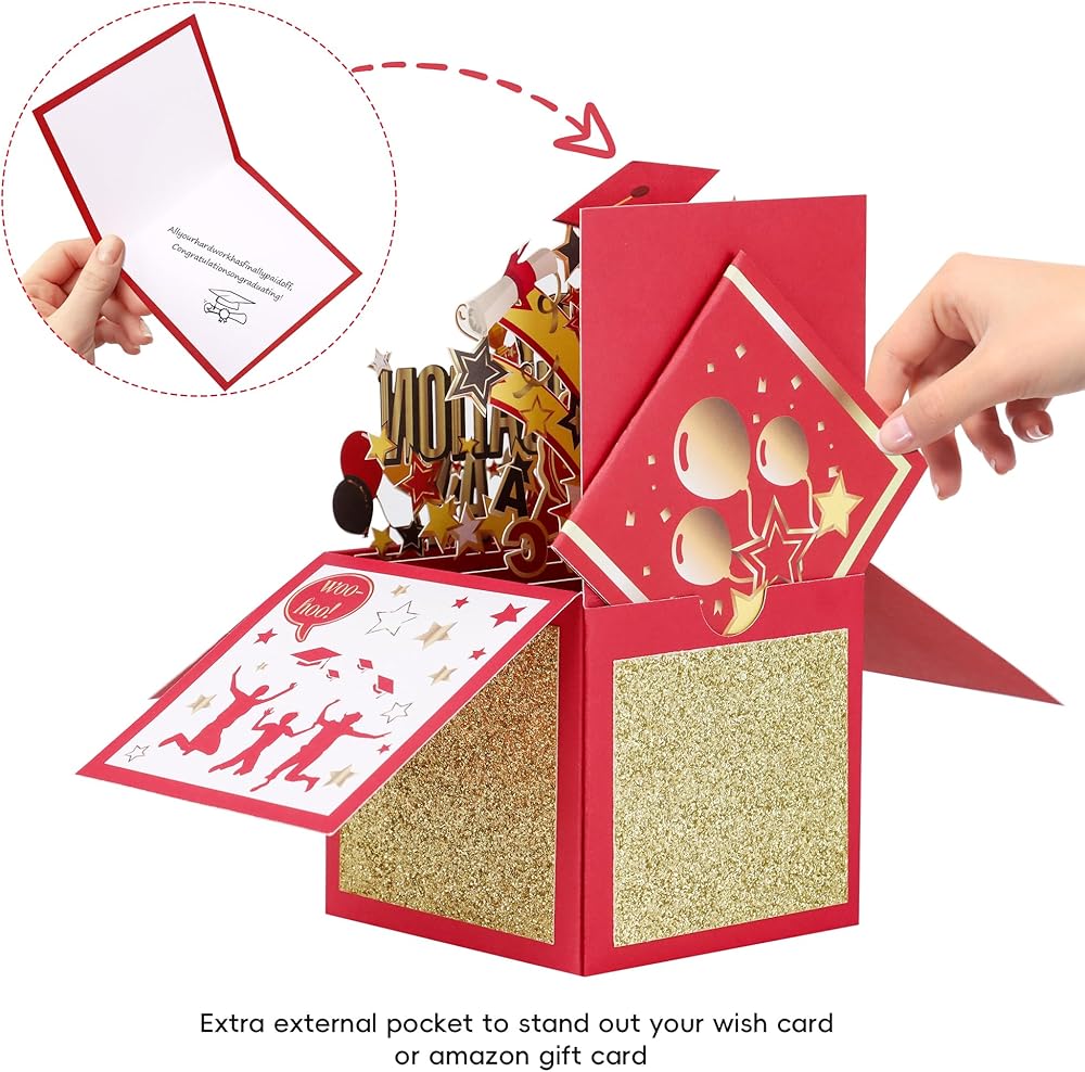 بطاقات التخرج ثلاثية الأبعاد من POPGIFTU مصنوعة من ورق فني عالي الجودة، مع حرفية رقائق ذهبية لتتناسب مع ذلك، البطاقة المنبثقة الفريدة المصنوعة يدويًا مقطوعة بالليزر وتم تجميعها بعناية يدويًا للحصول على لمسة نهائية مثالية.