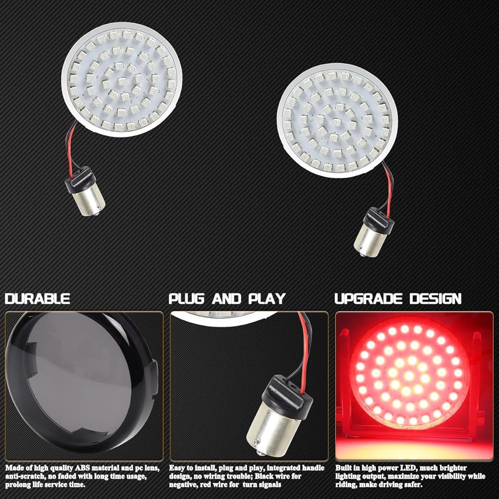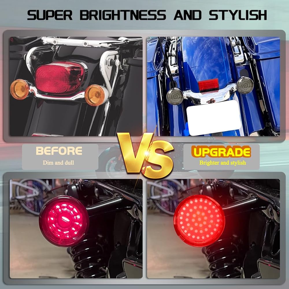 • 【سطوع فائق وأنيق】مصابيح LED مدمجة عالية الطاقة، إخراج إضاءة أكثر سطوعًا من مصابيح الهالوجين، تحسن رؤيتك بشكل كبير، وتجعل القيادة أكثر أمانًا؛ تضيف العدسات المدخنة ونمط الضوء المتسلسل ميزات جديدة إلى دراجتك النارية، وتجعلك مميزًا بين الناس.