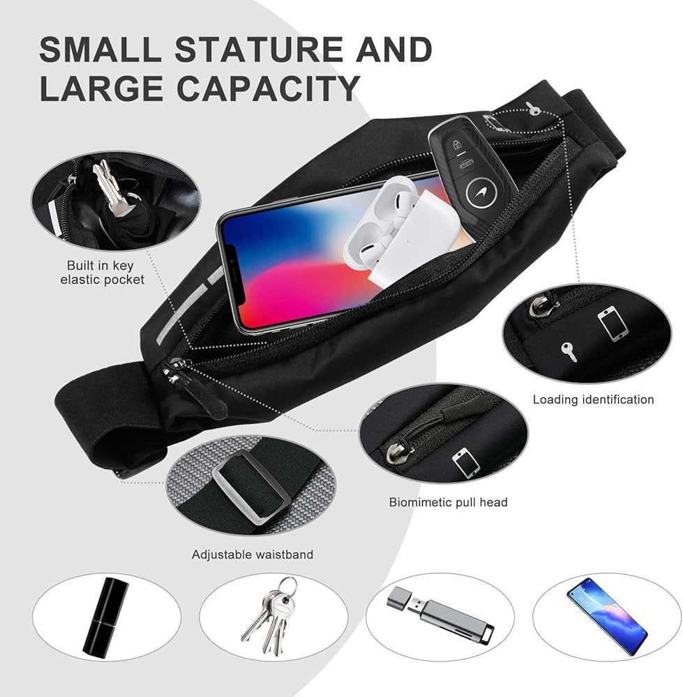 【مقاومة للماء + عاكسة】--طبقة داخلية معززة من مادة TPU وسحاب مقاوم للماء للحفاظ على أغراضك جافة من العرق؛ حقيبة فاني عاكسة للجري مع أشرطة عاكسة، تضمن أنك آمن حتى عند الجري ليلاً أو في ظروف الإضاءة المنخفضة