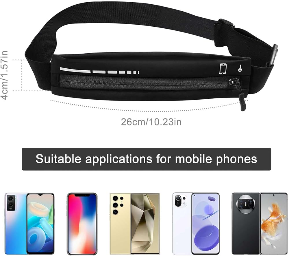 【سعة كبيرة】-- تناسب جميع الهواتف المحمولة مقاس 4.7 بوصة إلى 6.5 بوصة، حجم الحقيبة الرئيسية لحقيبة الخصر في صالة الألعاب الرياضية: 10.23 × 1.57 بوصة (عرض × ارتفاع)، يمكنك حمل المفاتيح والنقود والبطاقات وسماعات الأذن والأشياء الثمينة الصغيرة. تناسب حقيبة الخصر الرياضية جميع الهواتف الذكية التي يقل طولها عن 6.5 قدم