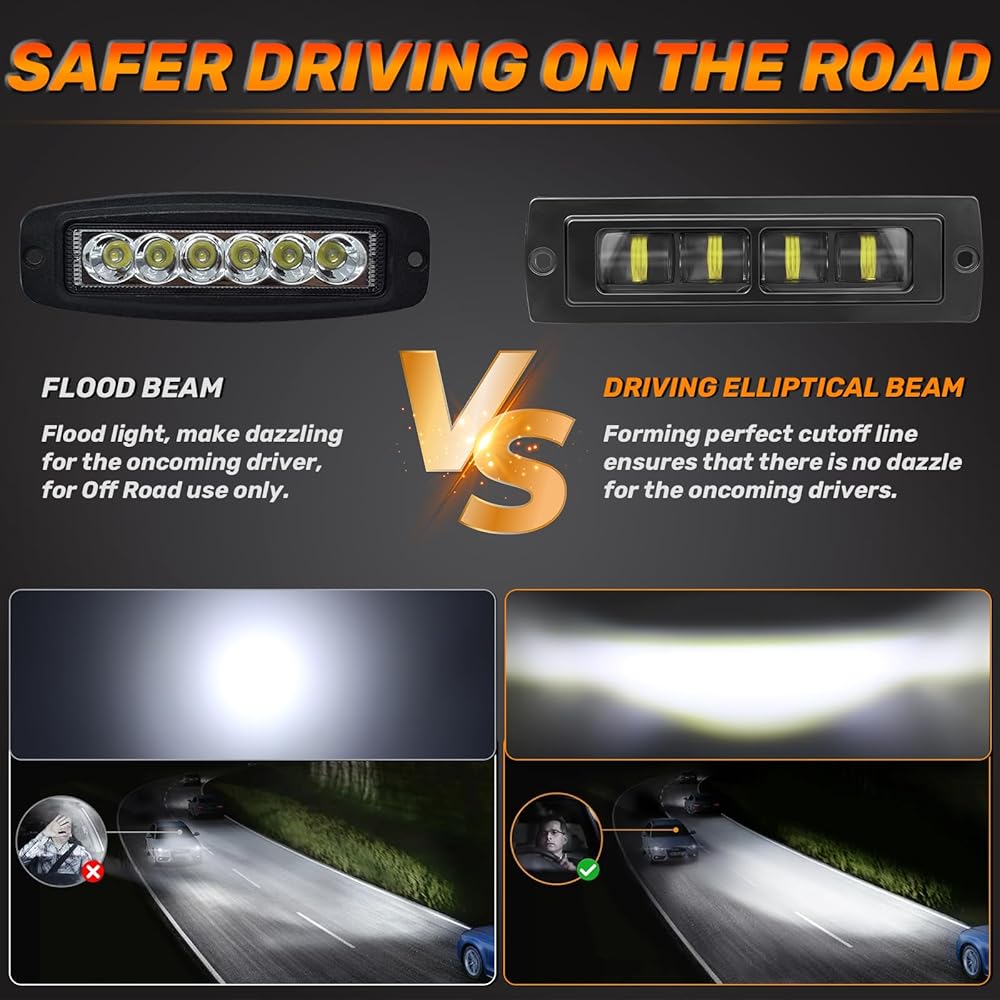 • 【نقل الضوء العالي】تتميز مصابيح جراب التثبيت المتدفق بعدسة بصرية 6D مطورة ورقائق LED مدمجة عالية السطوع تنتج ما يصل إلى 6000 لومن من الضوء الأبيض الساطع 6000 ك. مع شعاع موضعي مثالي، والذي يوفر إضاءة ممتازة سواء كنت تقود في الظروف الجوية القاسية، مما يضمن تجربة قيادة آمنة.