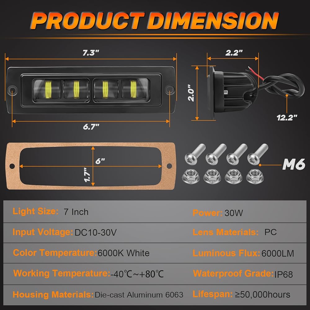 DERI 7 بوصة فلوش ماونت LED القرون، 2PCS 6000LM دافق جبل ضوء بار ماء القيادة ضوء الضباب ضوء عكس الضوء الاحتياطية بقعة ضوء LED ضوء العمل لشاحنة الطرق الوعرة SUV 4x4 ATV UTV