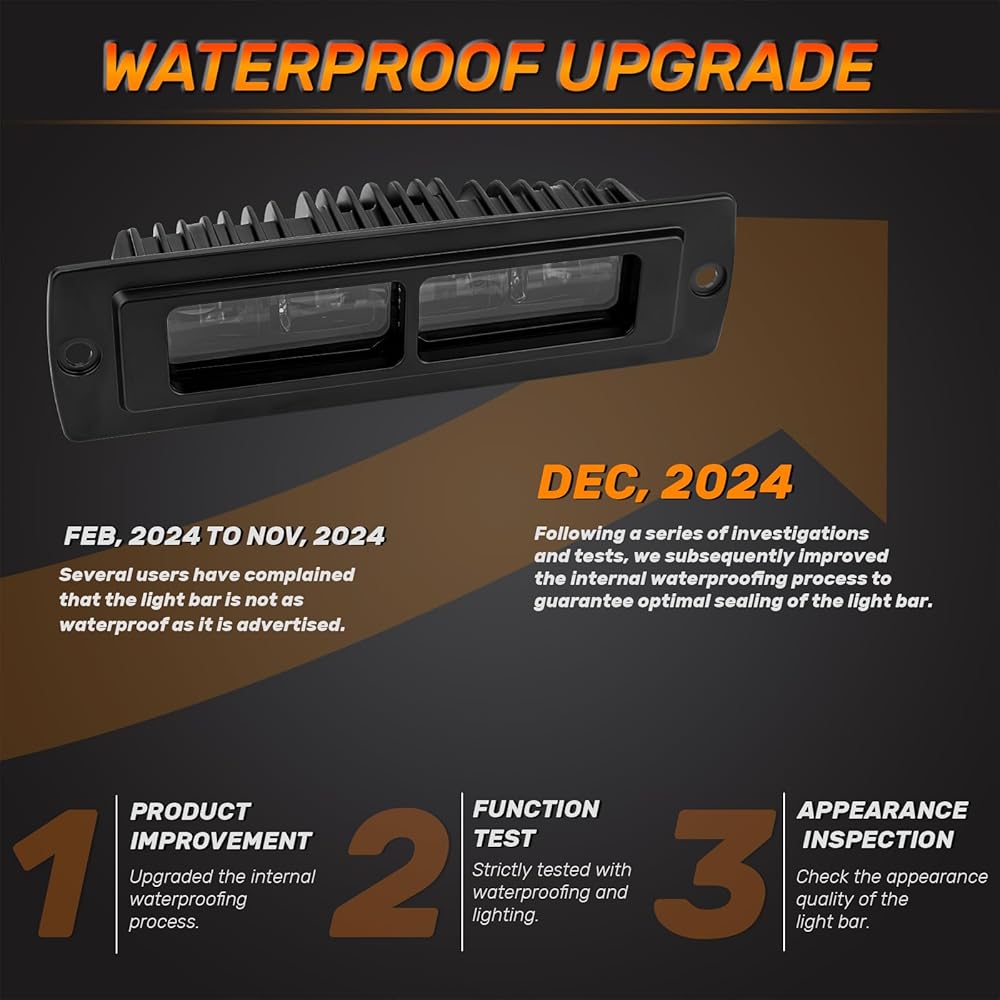 • 【درجة مقاومة للماء IP68】مع مقاومة للماء عالية الأداء، مصنوعة من هيكل من الألومنيوم المصبوب وعدسة PC قوية. يأتي السطح مطليًا بمسحوق أسود يمنع بشكل فعال الخدوش والمطر من التلف. تعمل زعانف الحرارة المصنوعة من الألومنيوم على زيادة مساحة السطح إلى الحد الأقصى من أجل التبريد الأمثل وضمان عمر افتراضي يزيد عن 50000 ساعة.