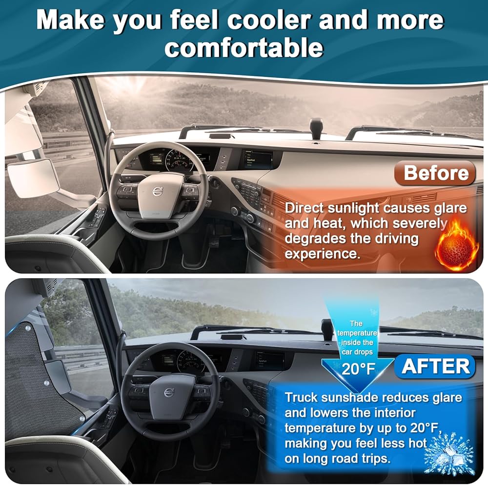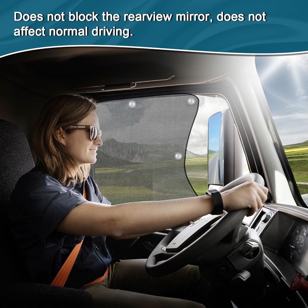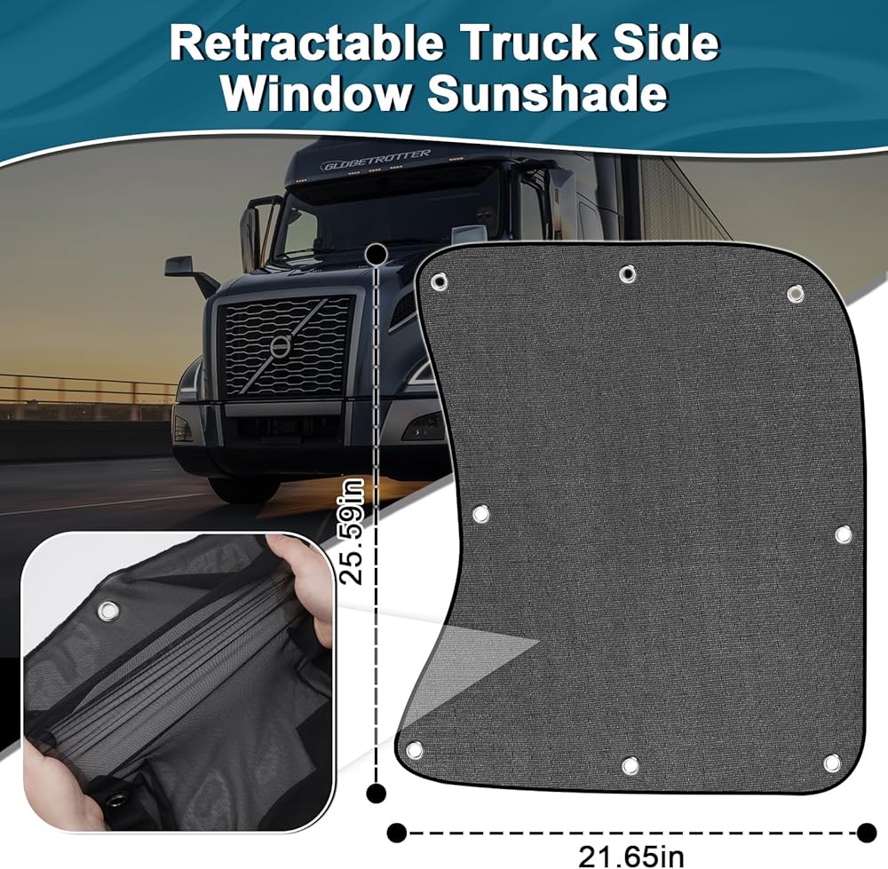 2 حزمة من أغطية نوافذ سائق الشاحنة الجانبية للنافذة الجانبية للشاحنة القابلة للسحب متوافقة مع شاحنة Freightliner فولفو VNL RV للشاحنات الدولية للحماية من الأشعة فوق البنفسجية (كوب الشفط)