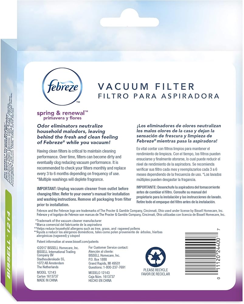 Genuine BISSELL parts. Includes 1 Pre- Motor filter with the fresh scent of Febreze Spring & Renewal. This accessory works with PowerGlide Lift-Off Series and PowerGlide Pet. Febreze and related trademarks are owned by The Procter & Gamble Company, Cincinnati, Ohio, and used under license by BISSELL Homecare, Inc.