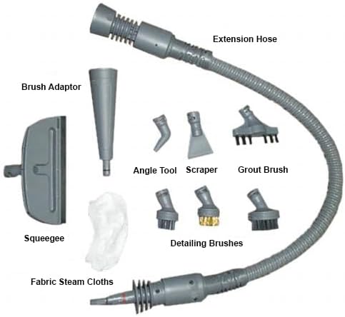 مجموعة ملحقات مكونة من 12 قطعة - جهاز بخار نظيف يشتمل على: أداة فوهة بزاوية، خرطوم تمديد قابل للانحناء، 4 فرش تفصيلية، أداة بخار للقماش، ممسحة مطاطية للنافذة/الباب، مكشطة، فرشاة ملاط، فوهة ملحقة وكوب ماء. يمكنها تنظيف أي فجوات وزوايا وزوايا وأسطح مختلفة يصعب الوصول إليها: البلاط والأحواض والمواقد والنوافذ والأريكة والألعاب وملابس محبي السيارات.