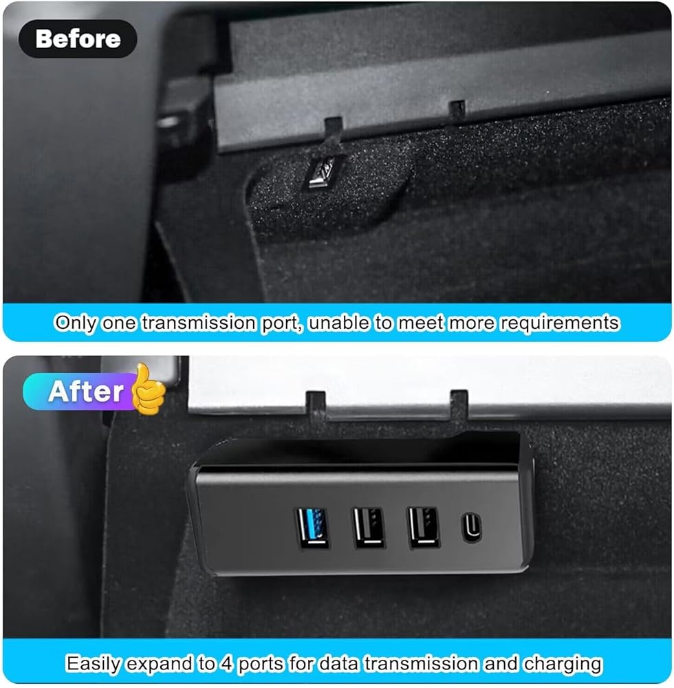 【Customized Design】: Since Tesla 2021 car canceled the center console data transmission, , the USB-A in glovebox is the only data port. This glove box USB hub is specially designed for Model 3 and Model Y.