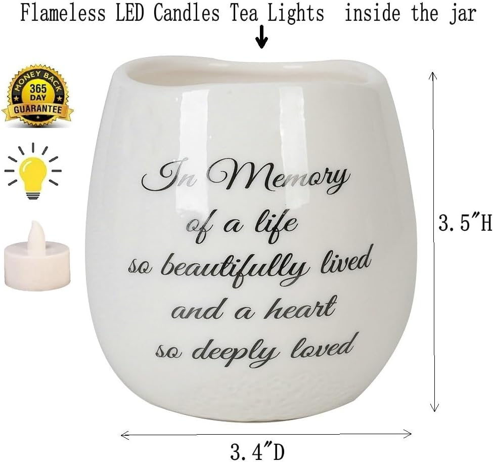 PREMIUM QUALITY: 8oz candle holder, packaged securely in a gift ready box, is made from high quality ceramic called bone china and packed with an Flameless LED tea light inside.